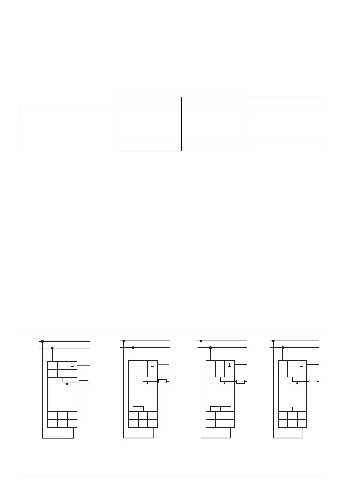 Fig. 3: Anschlussbilder: Ruhestrom, nicht speichern (1)/Arbeitsstrom, nicht speichernd (2)/Arbeitsstrom, speichernd (3)/Ruhestrom, speichernd (4)