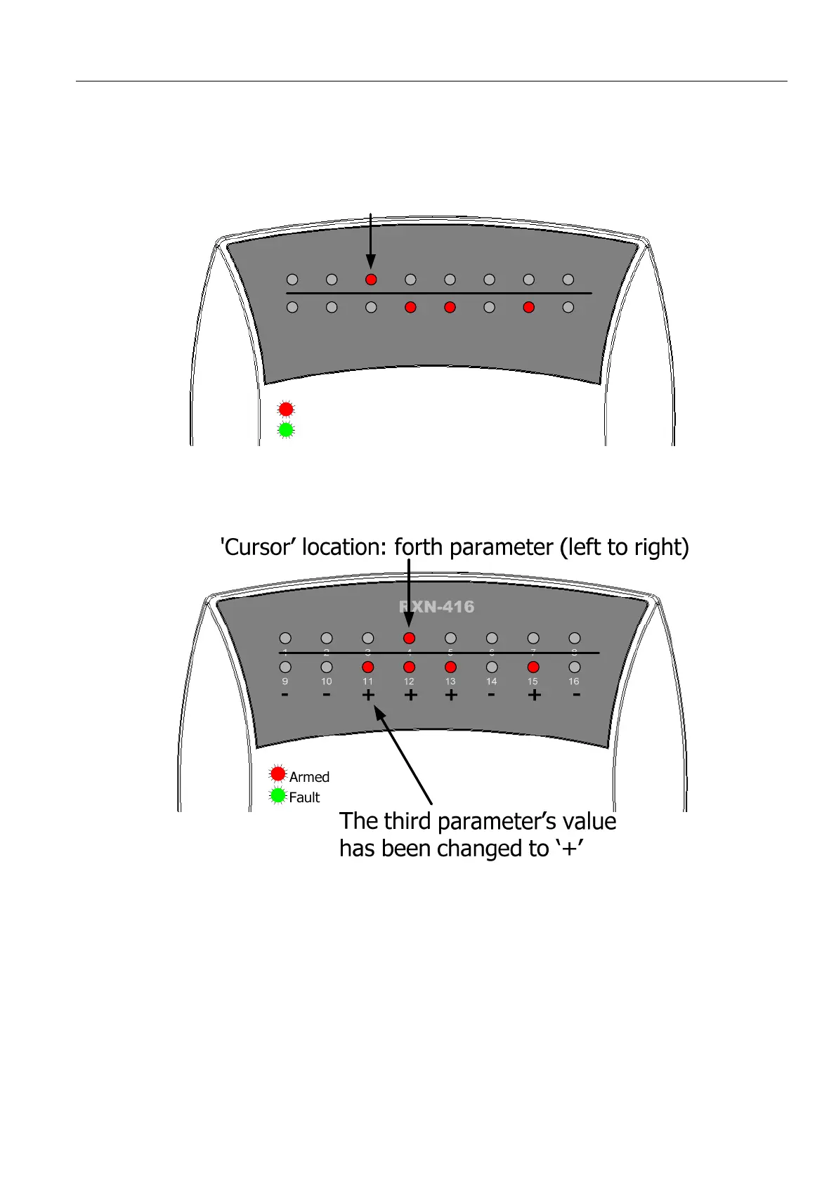 4. Press the pound key (#) to toggle the parameters value between ‘+’ and ‘-’, i.e.
