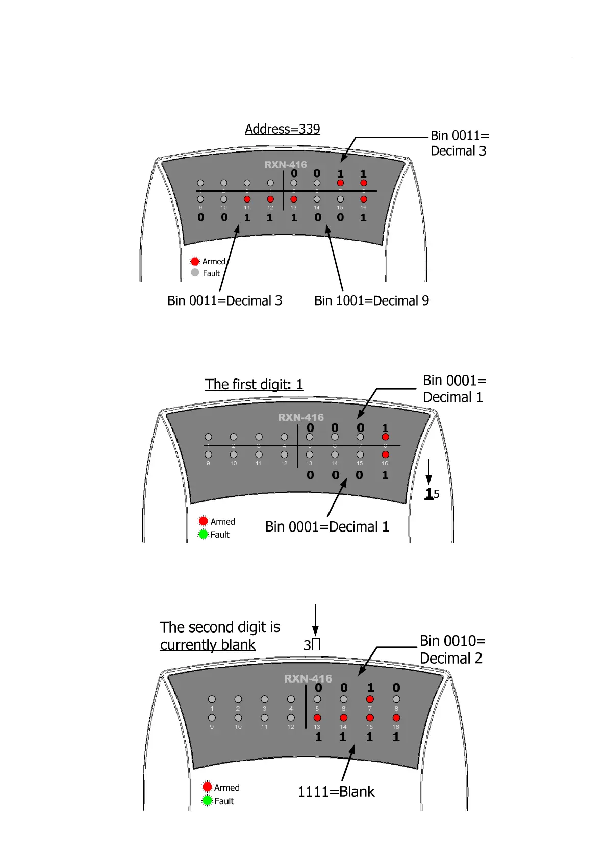 2. Press 339 for the address. The LEDs will illuminate as demonstrated in the figure: