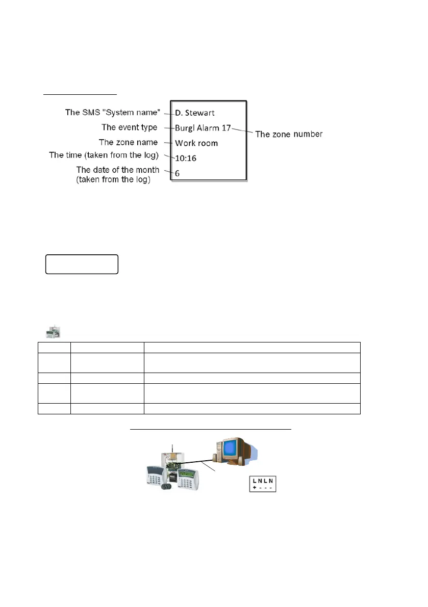 The information in the SMS message is taken from the system's log. In the demo screen