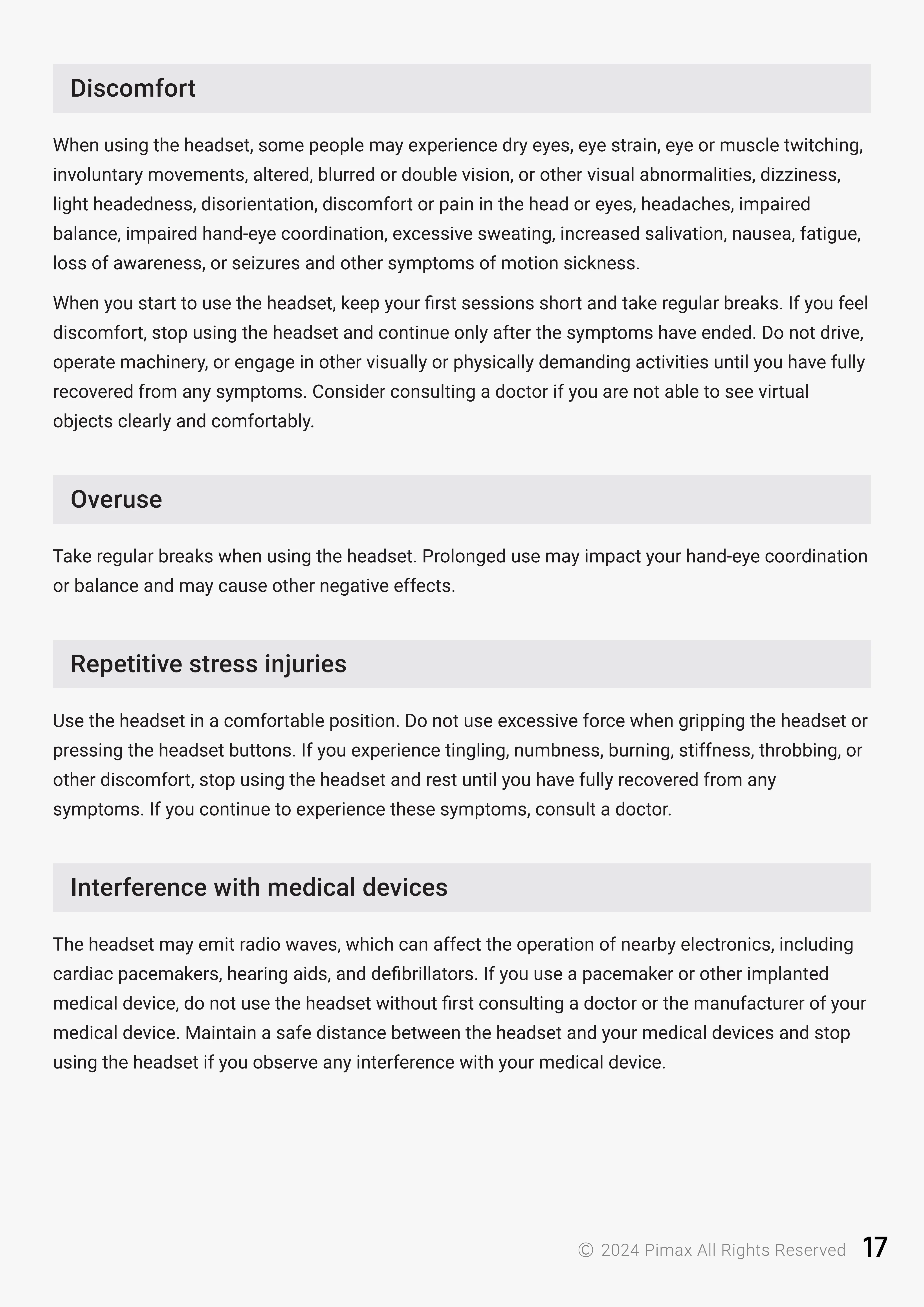 other discomfort, stop using the headset and rest until you have fully recovered from any