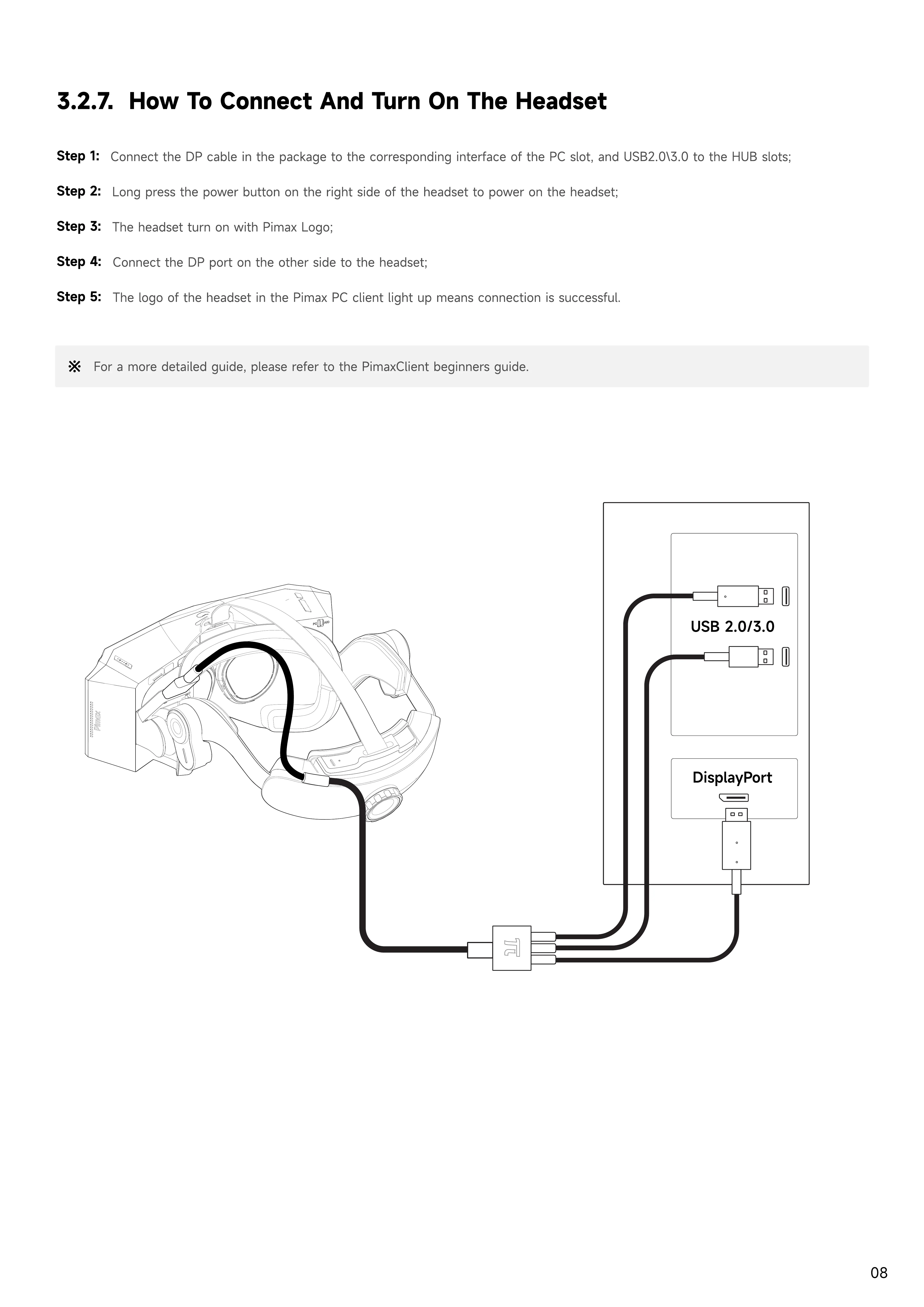 The logo of the headset in the Pimax PC client light up means connection is successful.