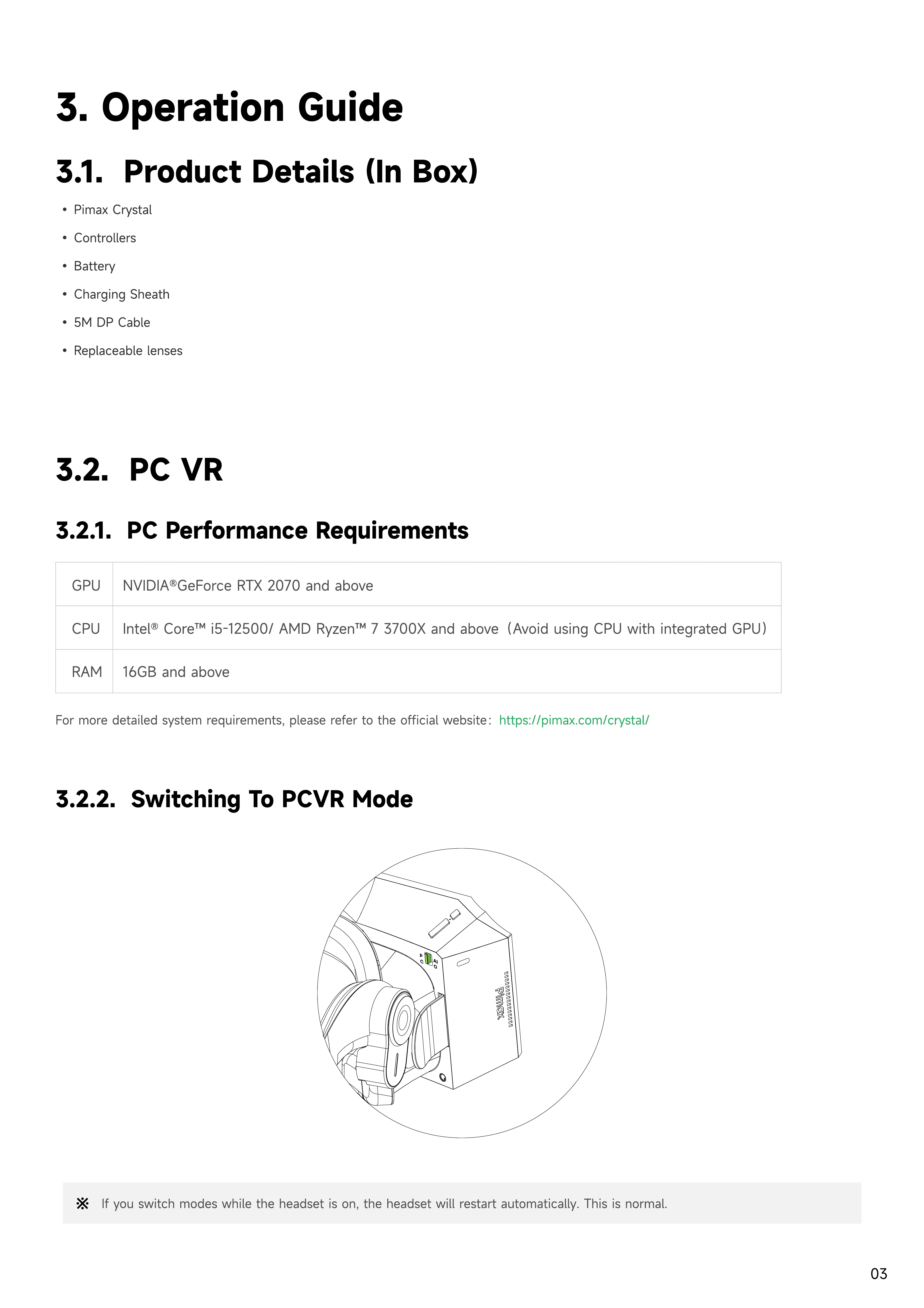 For more detailed system requirements, please refer to the official website:https://pimax.com/crystal/