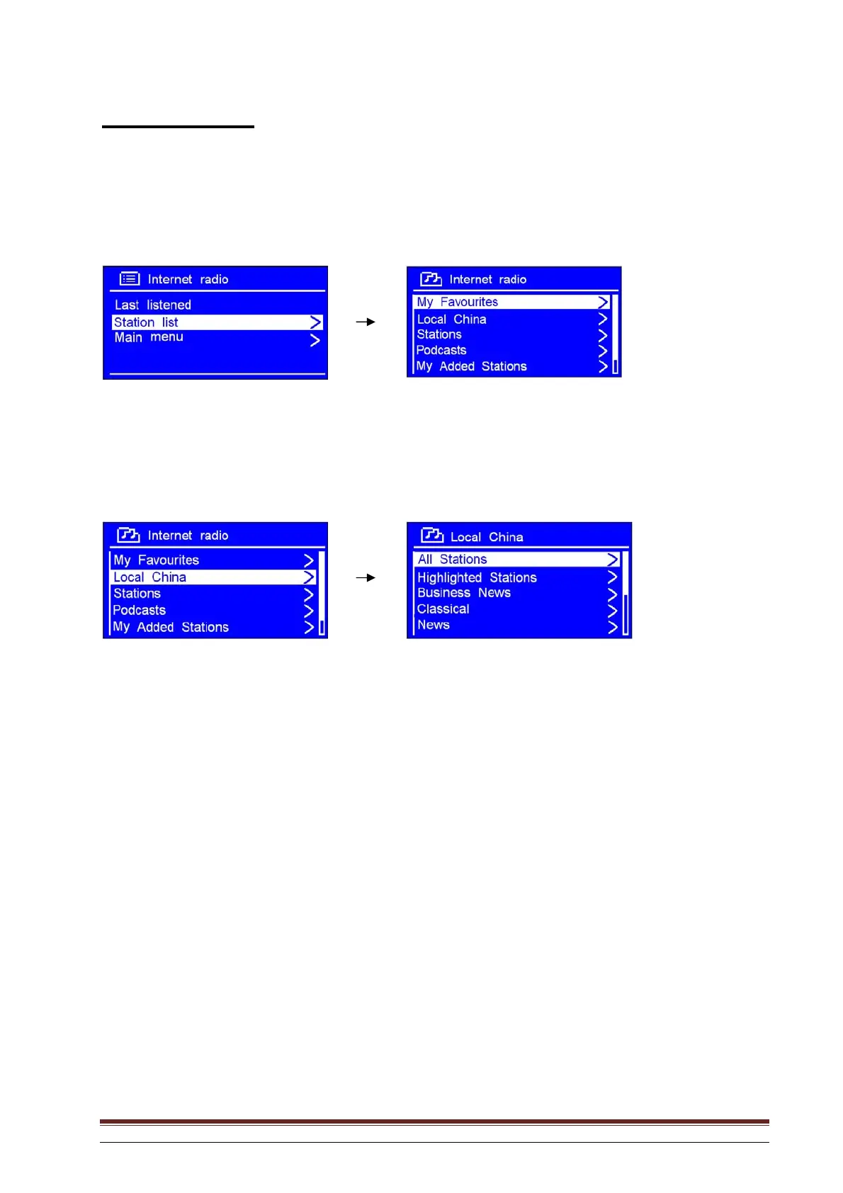 1. With the arrow pointing to Station list, press SELECT to confirm.