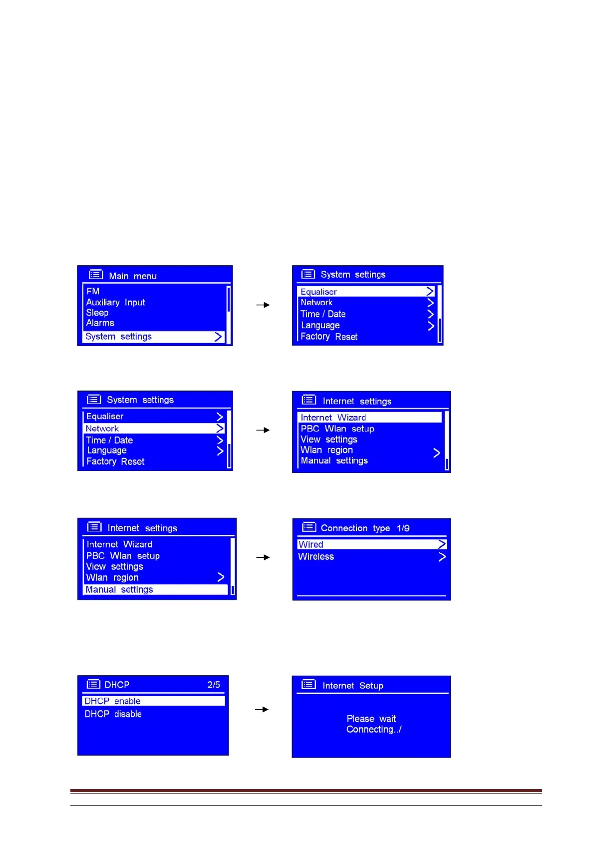 6. With the arrow pointing to DHCP enable, press SELECT to confirm.