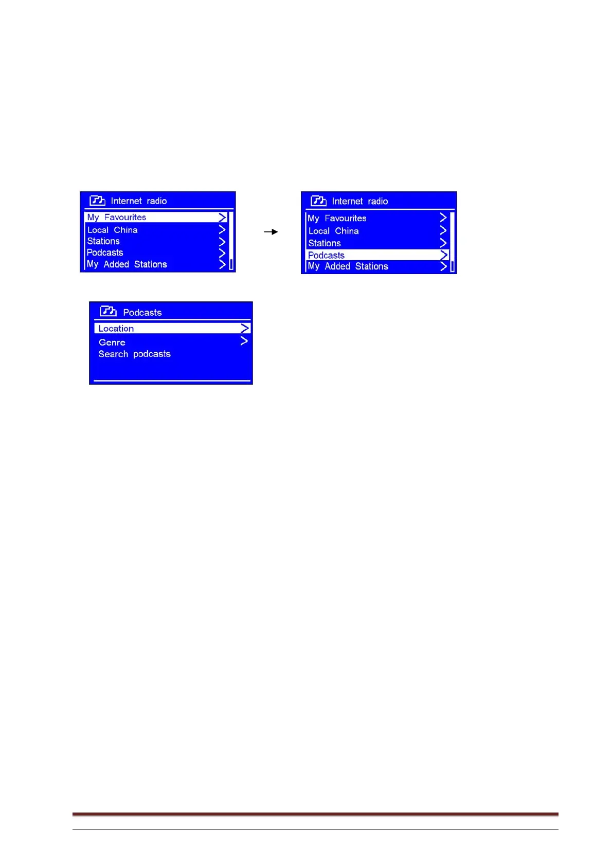 list and rotate the knob or use the arrow keys to highlight Podcasts.