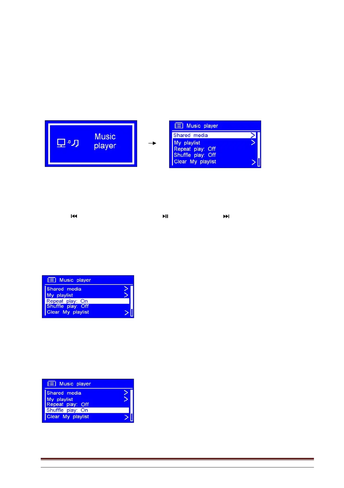 NB: You may also go to Main menu and rotate the knob or use the arrow keys to highlight Music player.