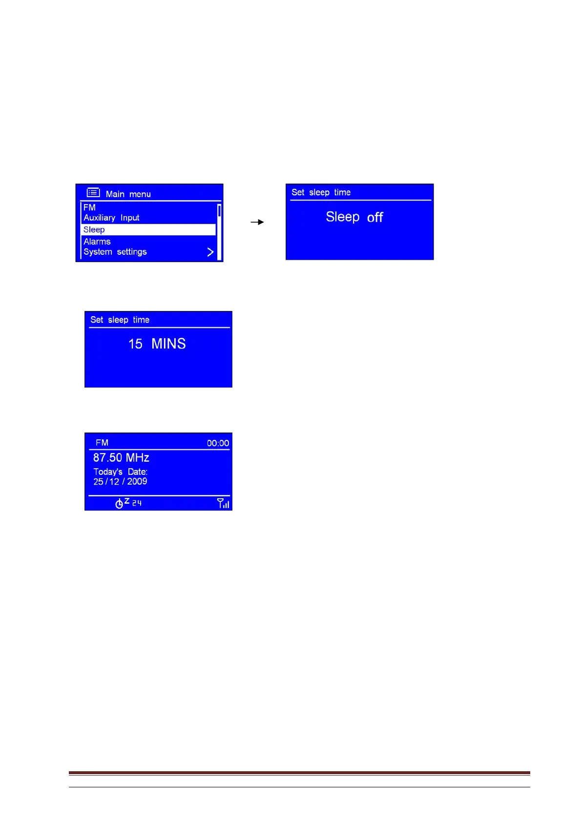 1. The function may be activated from Main menu Sleep. Press SELECT to confirm.