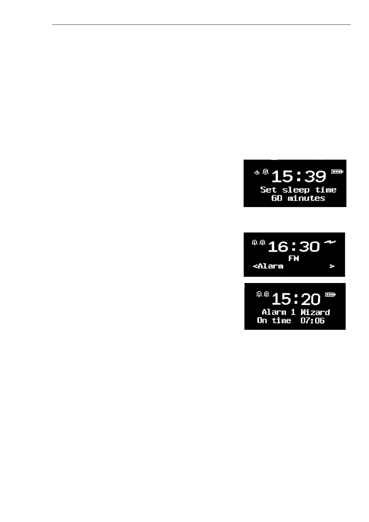The radio returns to standby for the set period, with the silenced alarm icon flashing and a countdown of the