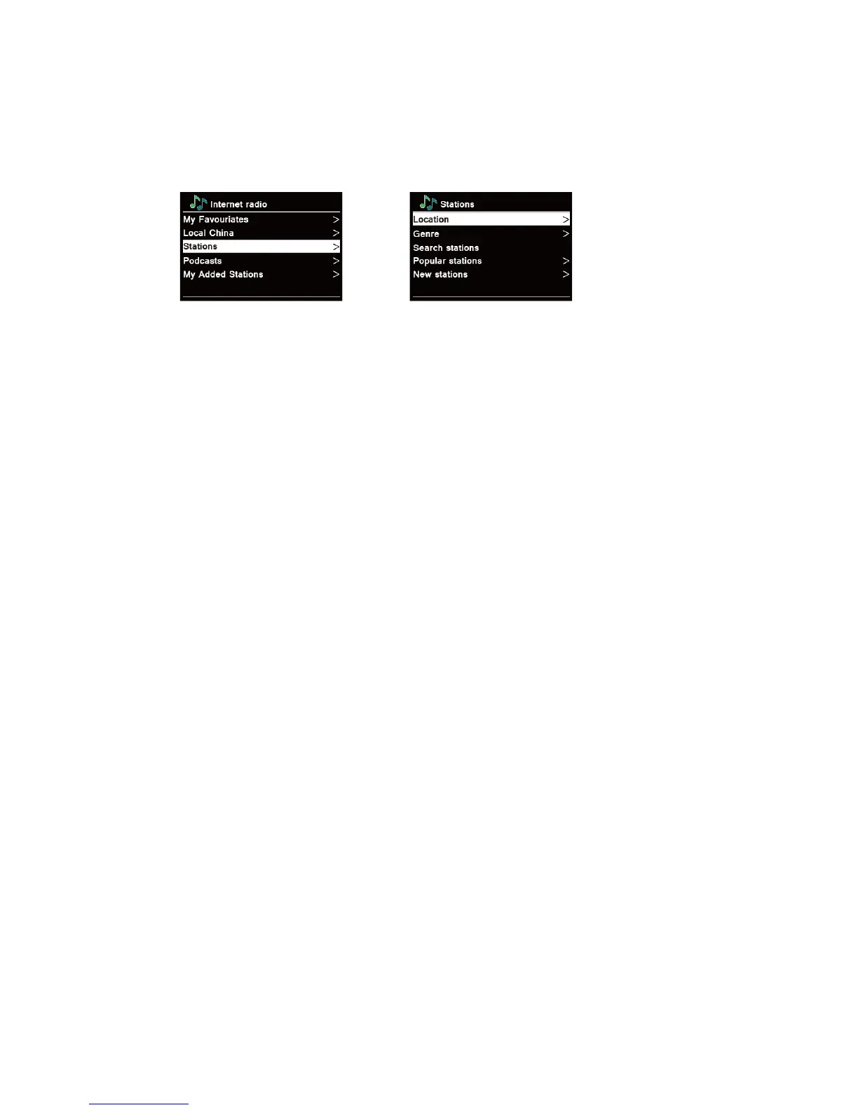 “Location” enables you to choose from the radio stations provided by any country which you