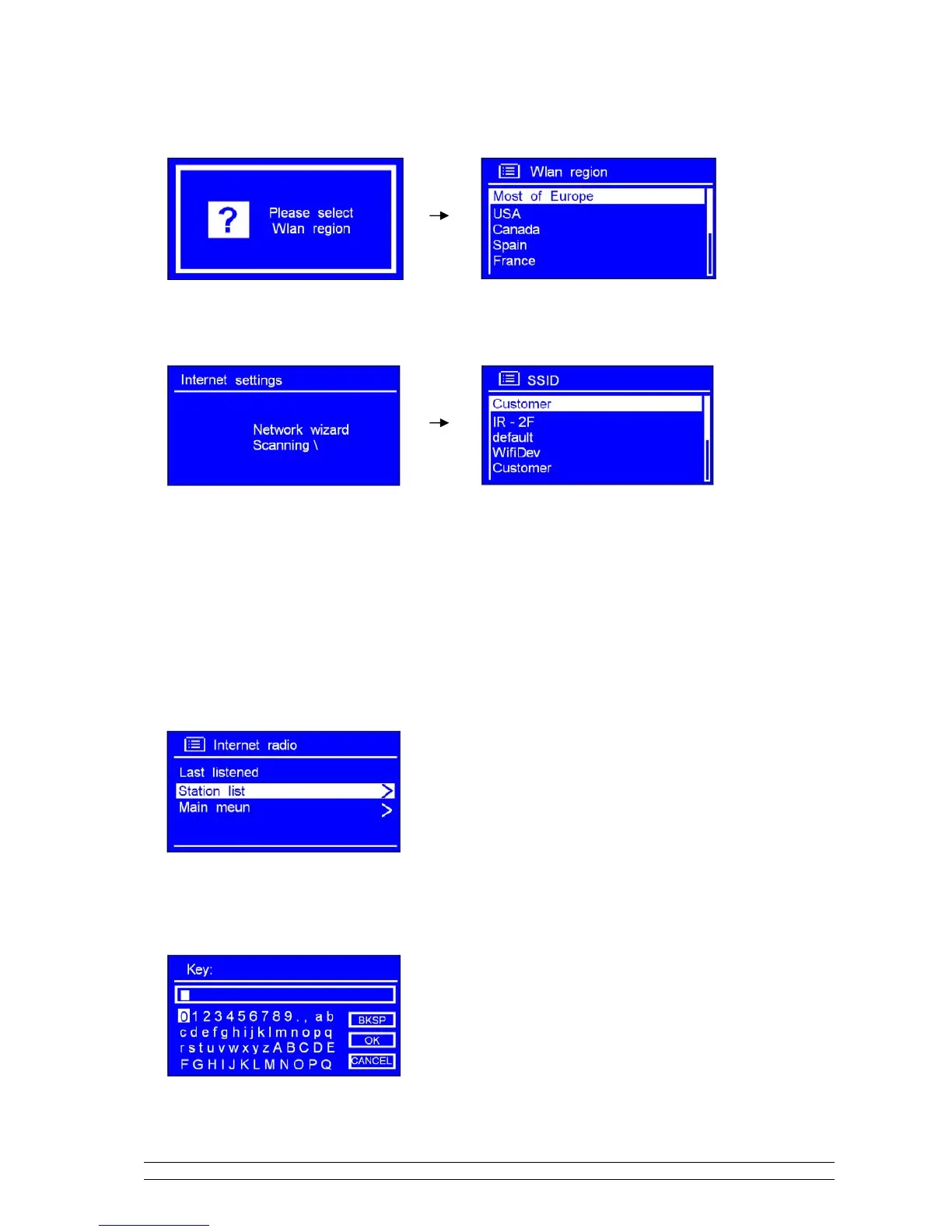 5. Turn the SCROLL knob to your local ‘Wlan region’, and then press it to confirm.