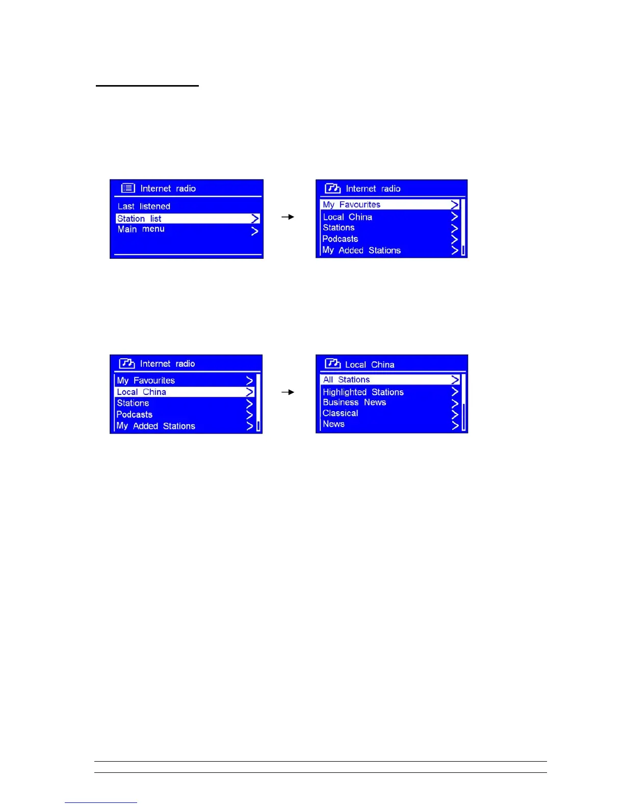 1. While cursor point to < Station list >, press the SCROLL knob to confirm.