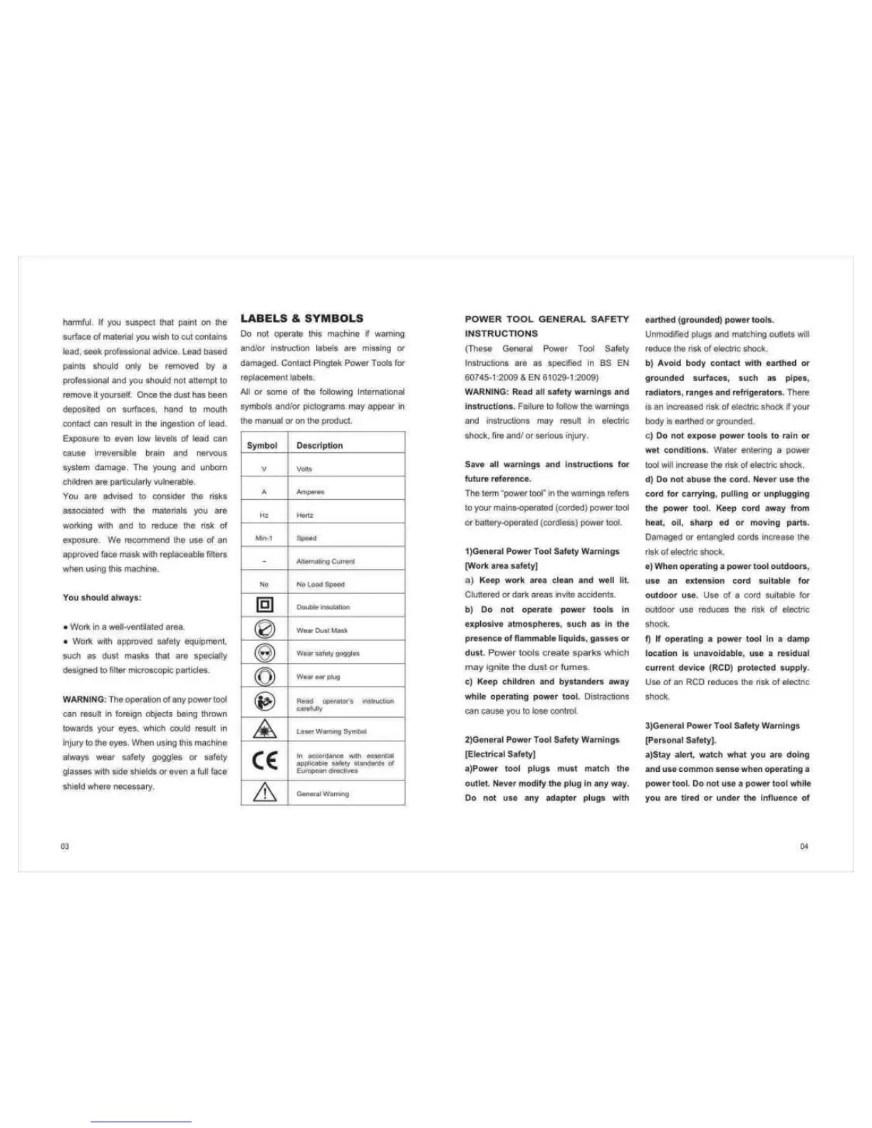 Pingtek PT44210-DB - General Safety Instructions and Symbols