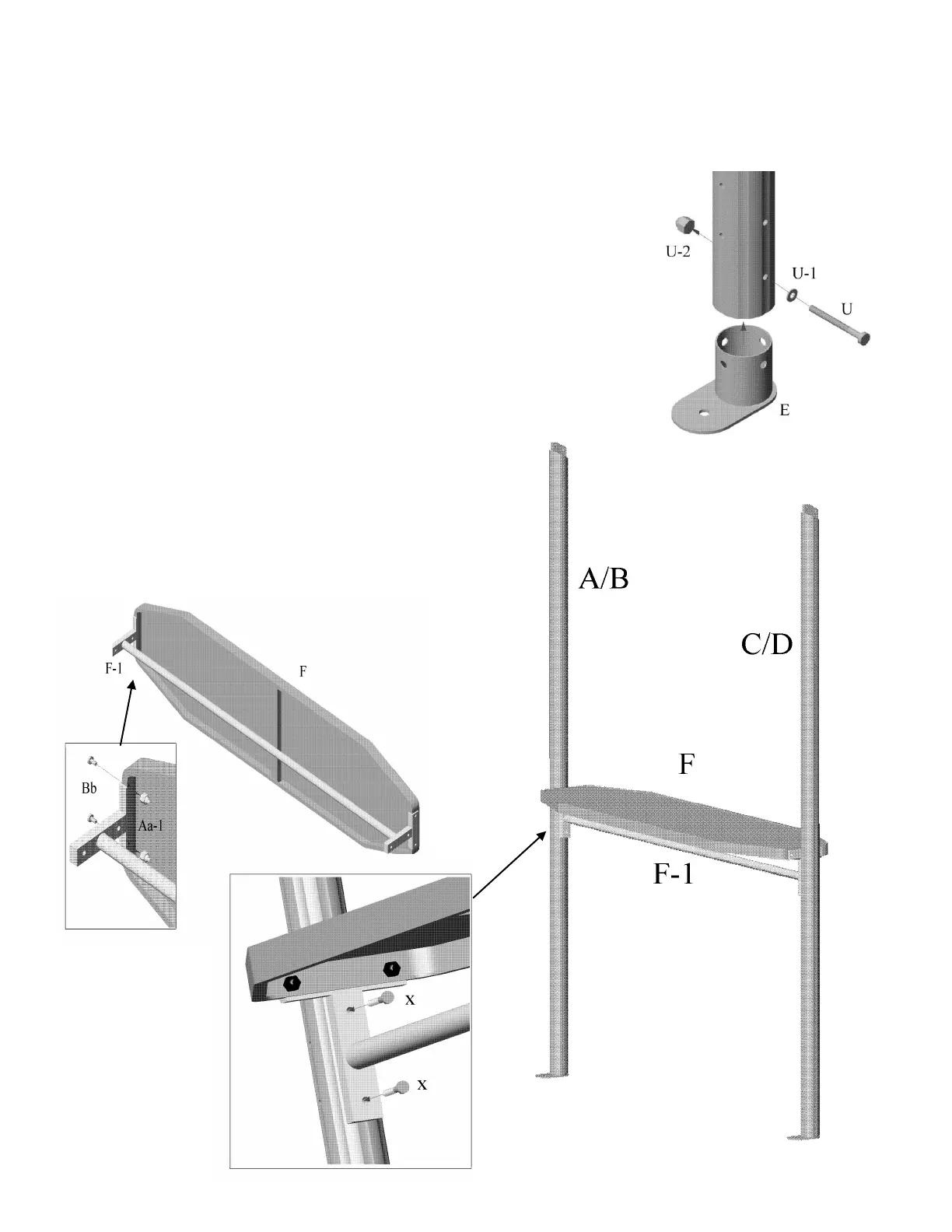 shelf (F) using 4 bolts (Bb) and locknuts (Aa-1)