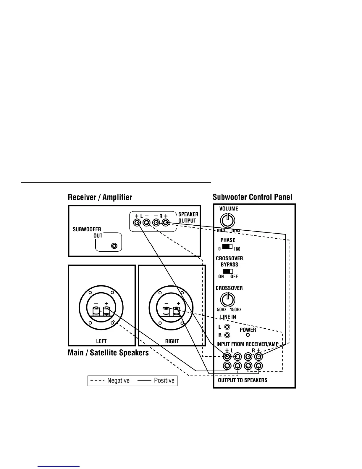 connect your subwoofer directly to your receiver's pre-amp outputs using the L & R Line Input jacks. If
