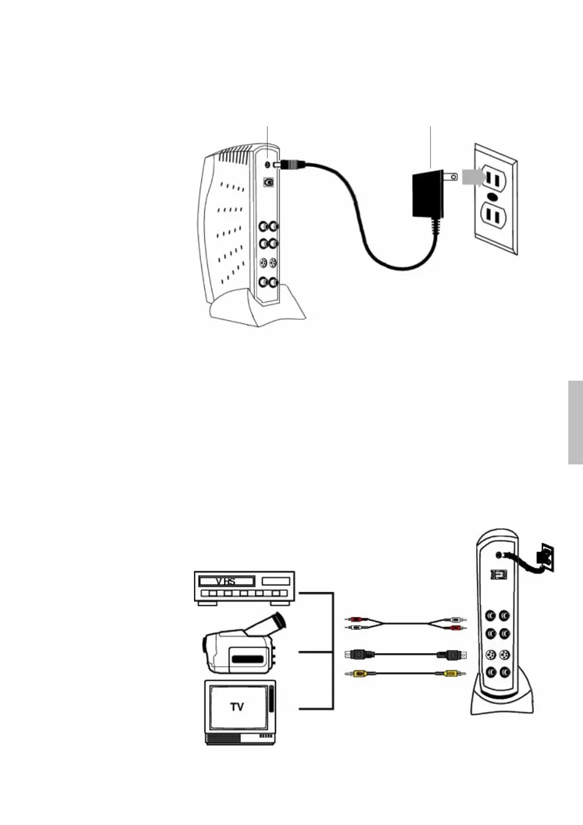 6. Para capturar vídeo, conecte os cabos de áudio e de vídeo às saídas da