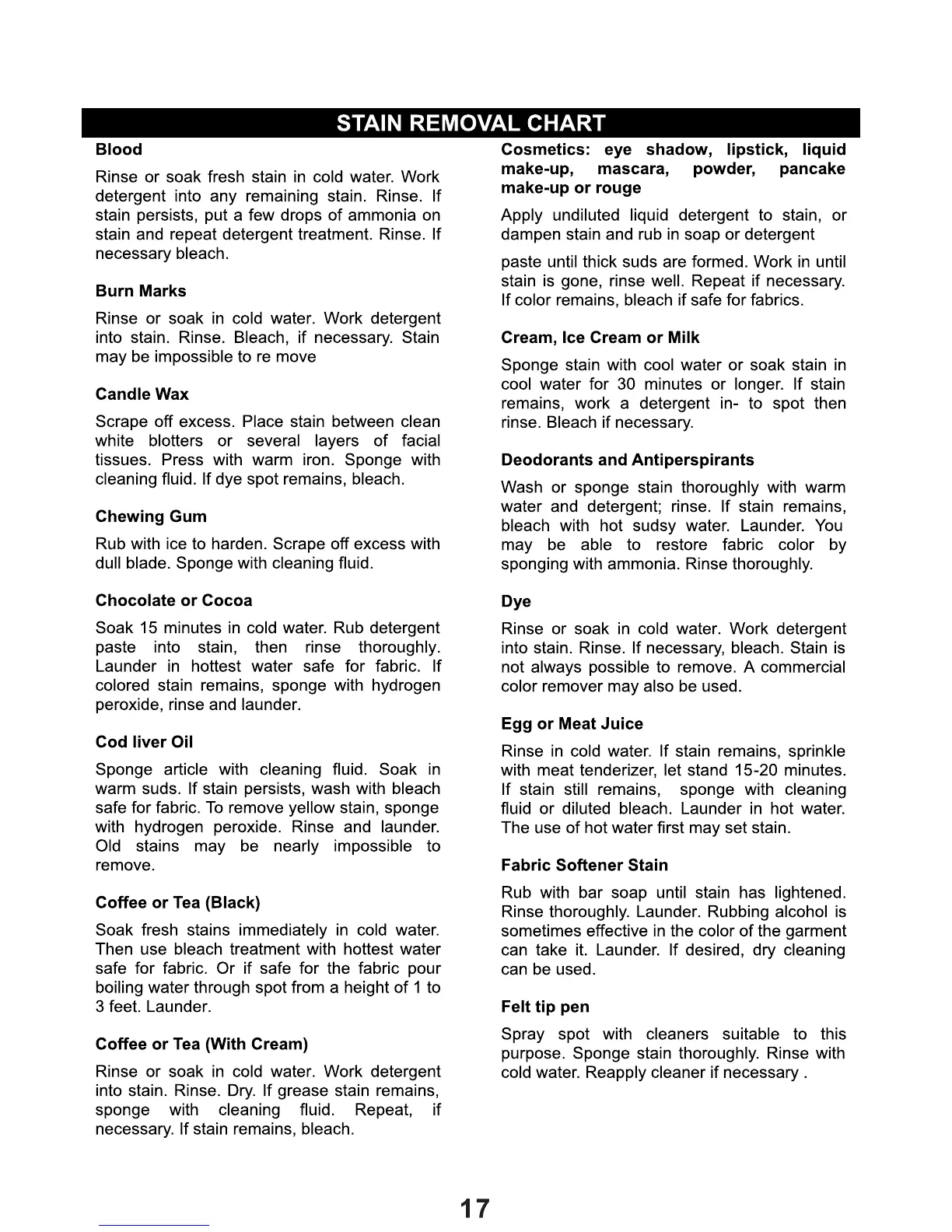 Pinnacle 18-820 - Stain Removal Chart; Blood; Burn Marks; Candle Wax
