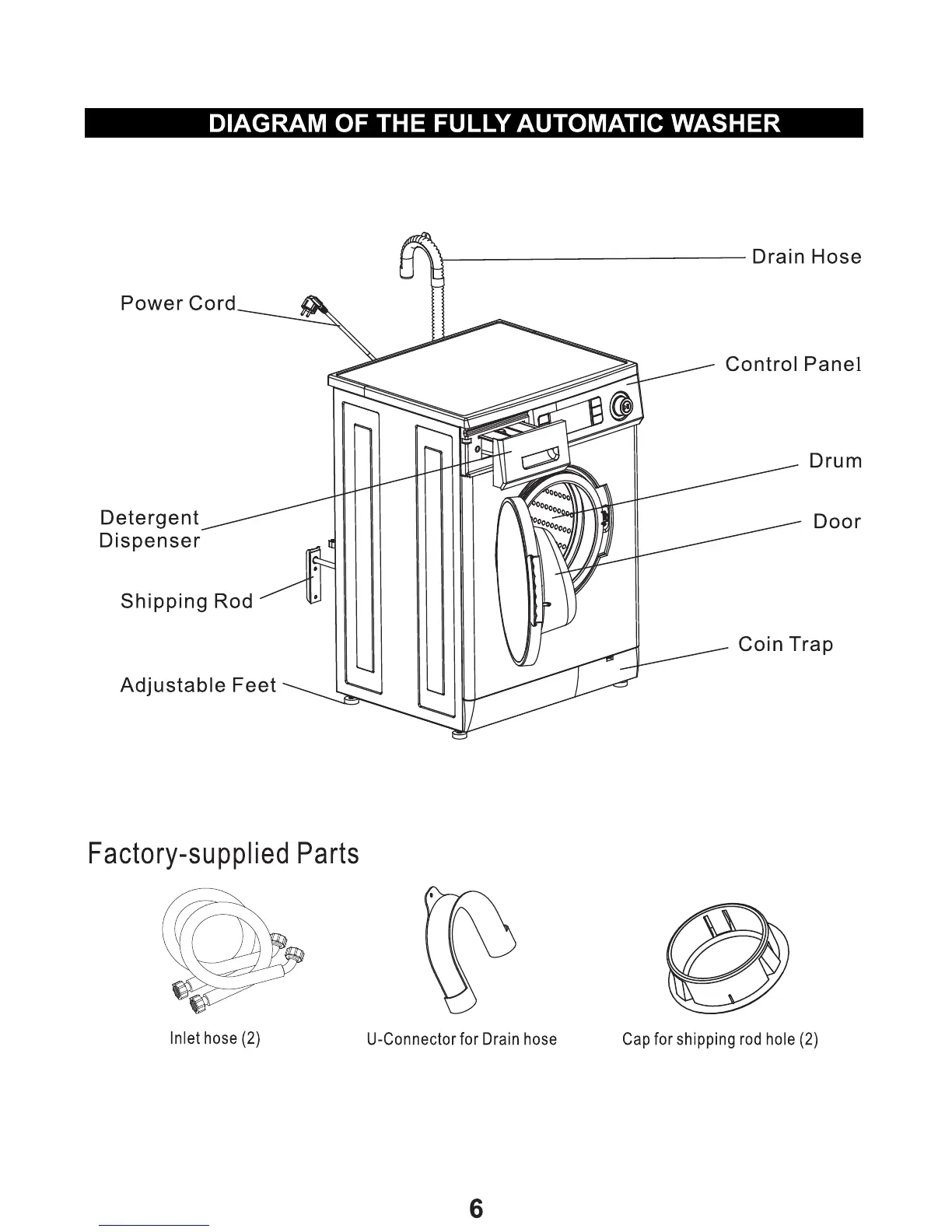 Pinnacle 18-820 - Diagram of the Fully Automatic Washer; Factory-Supplied Parts