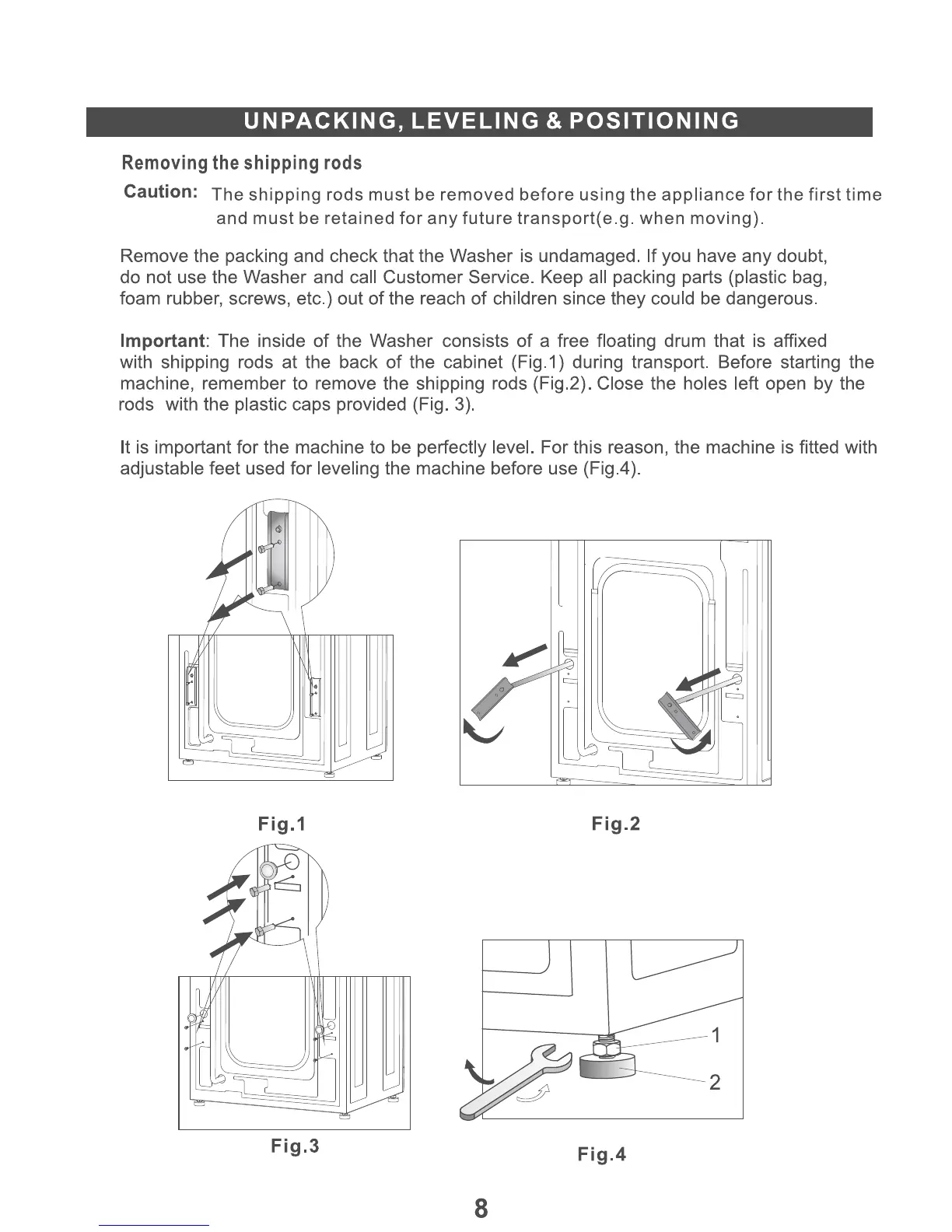 Pinnacle 18-824 - Unpacking, Leveling & Positioning; Removing Shipping Rods; Machine Leveling