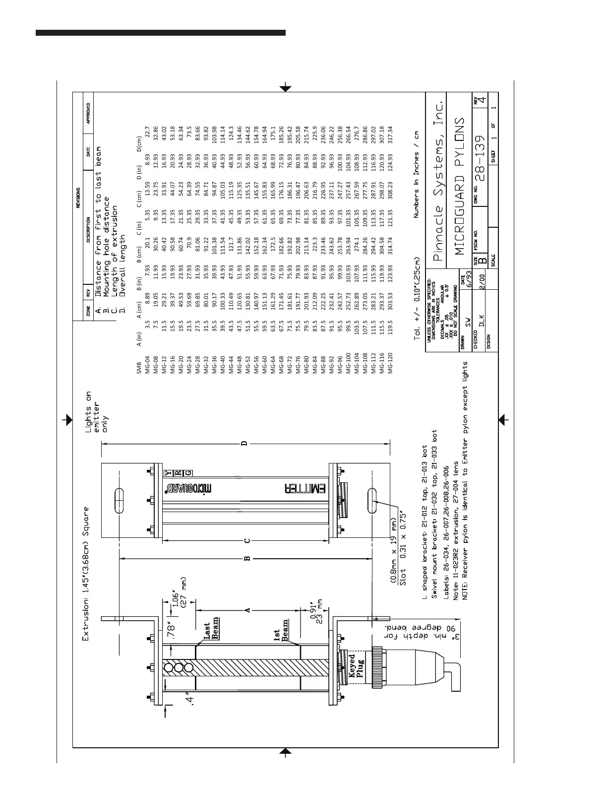 Pinnacle microguard - Pylon Dimensions (by Model) (Swivel); Additional Cable Information (Swivel); Physical Dimensions of Swivel Bracket; Figure 9 B: Swivel Bracket Dimensions, Pylon Dimensions (by Model), and Additional Cable Information