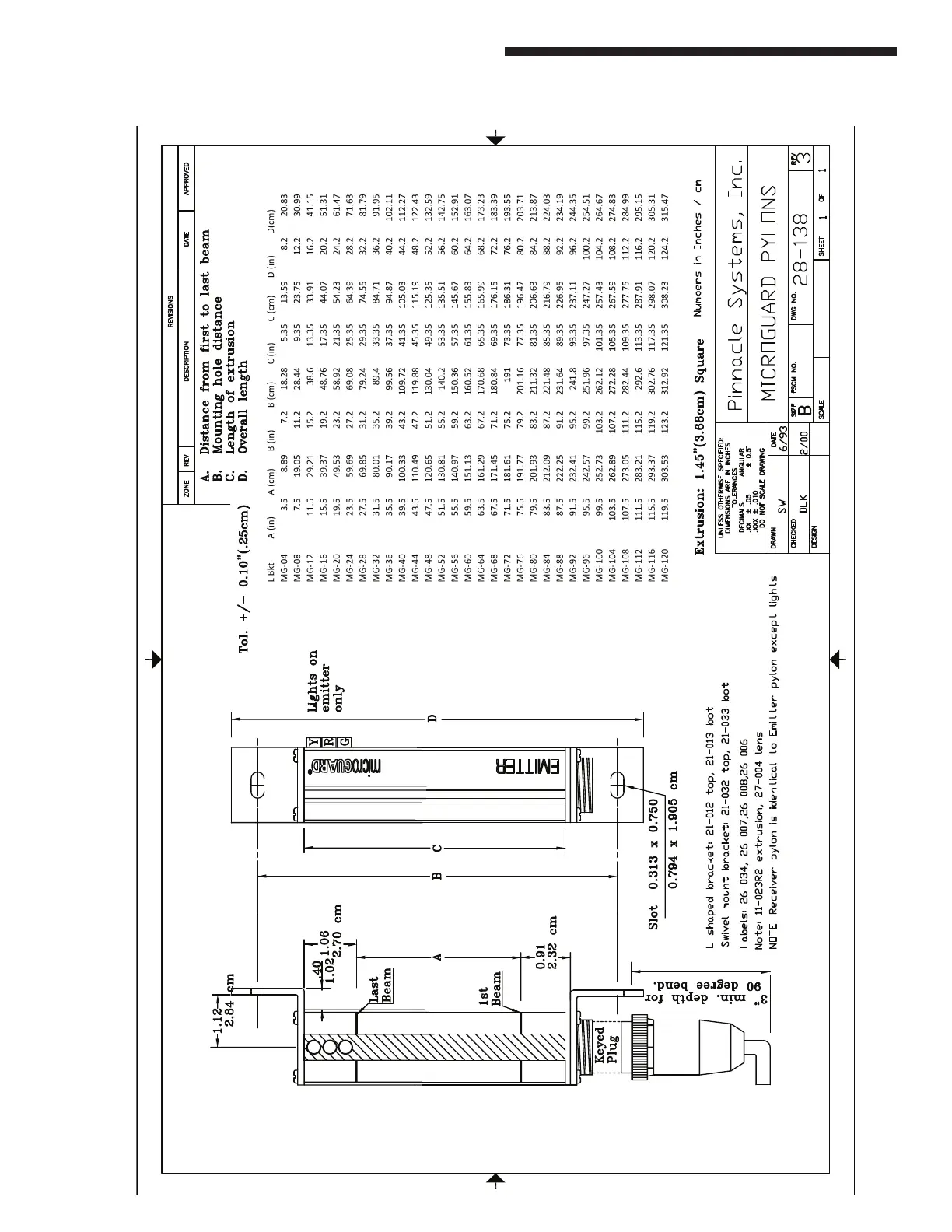 Pinnacle microguard - Fixed Bracket Dimensions; Pylon Dimensions (by Model) (Fixed); Additional Cable Information (Fixed); Physical Dimensions of Fixed Bracket
