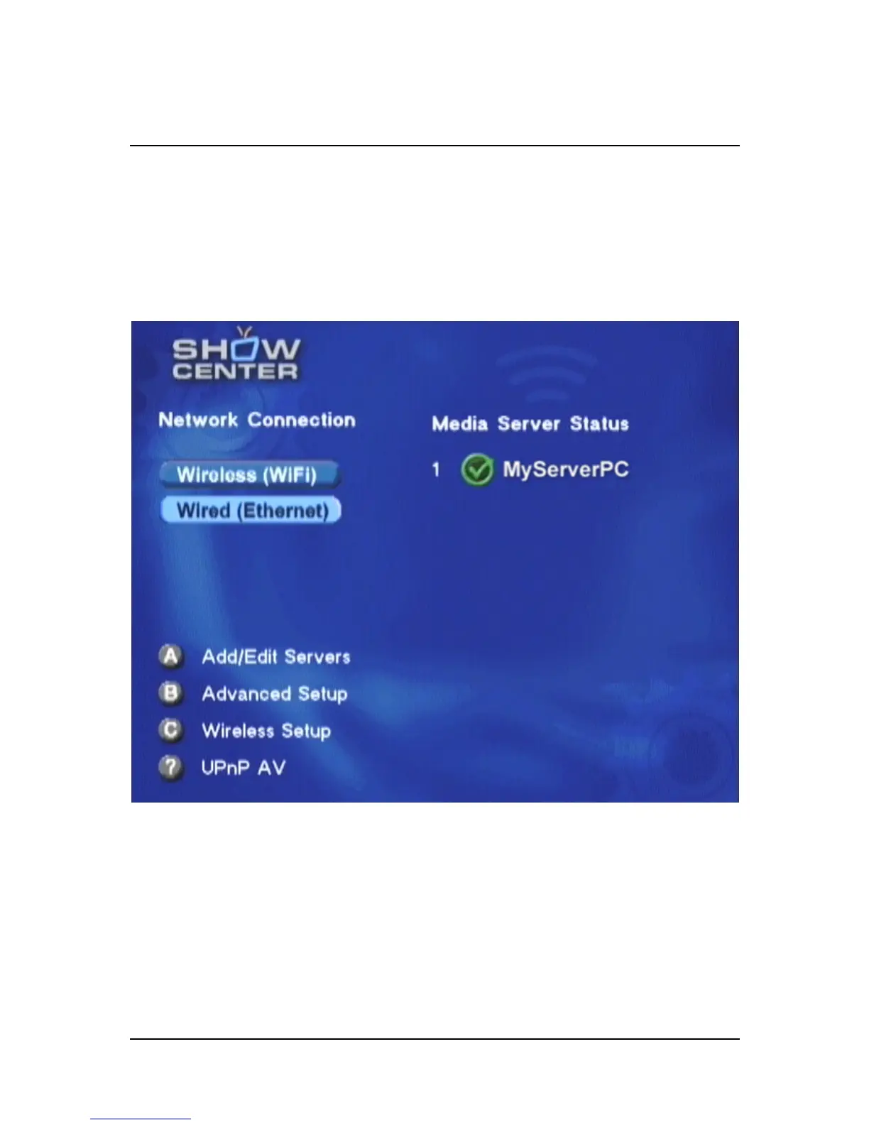 After you turn on the ShowCenter Player, the television screen will show the