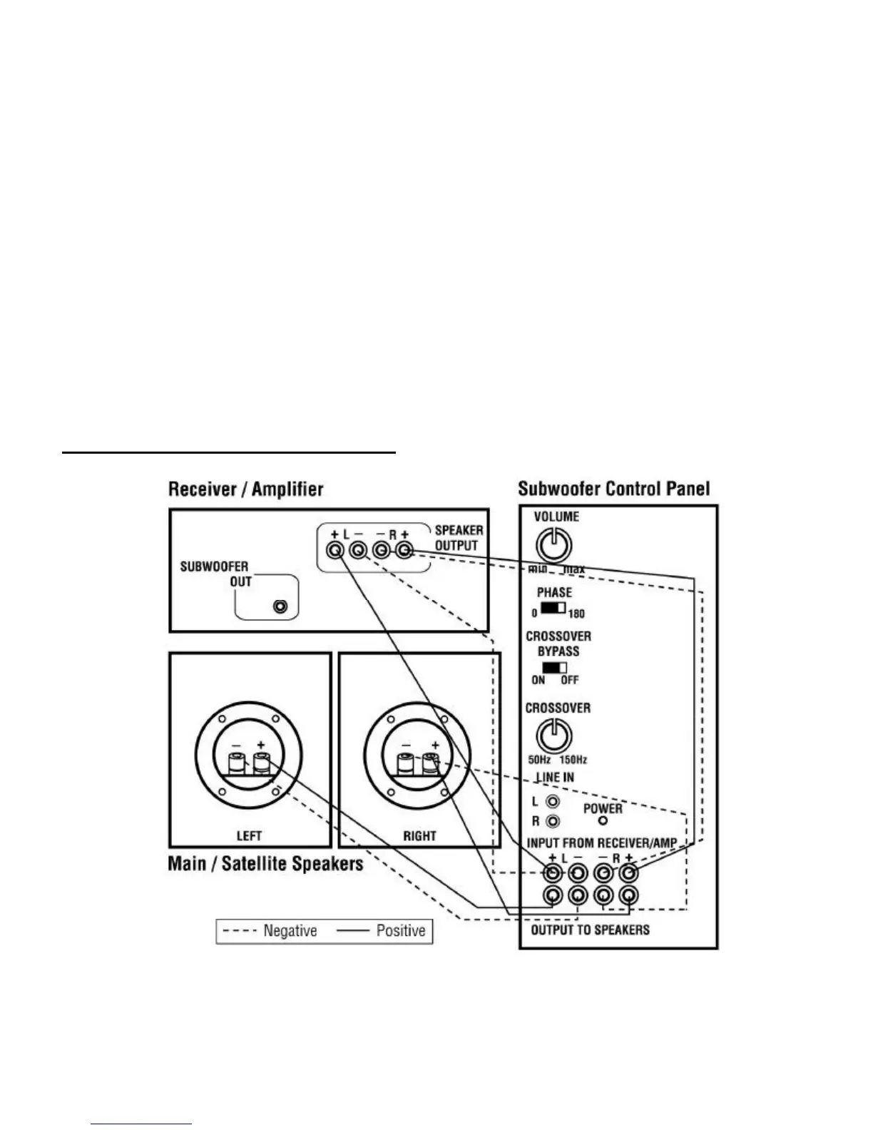 • If your receiver or processor has no subwoofer output jack you can connect your subwoofer, using its L &