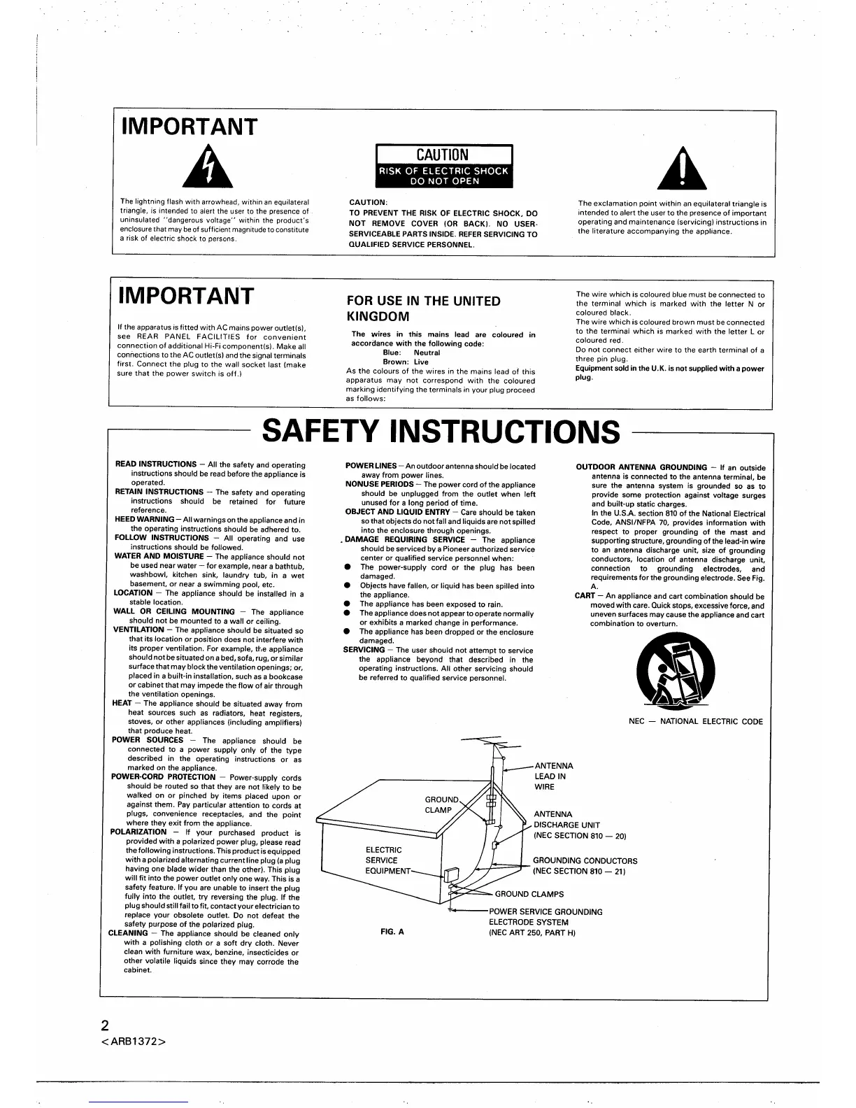 Pioneer A-101 - Safety Instructions