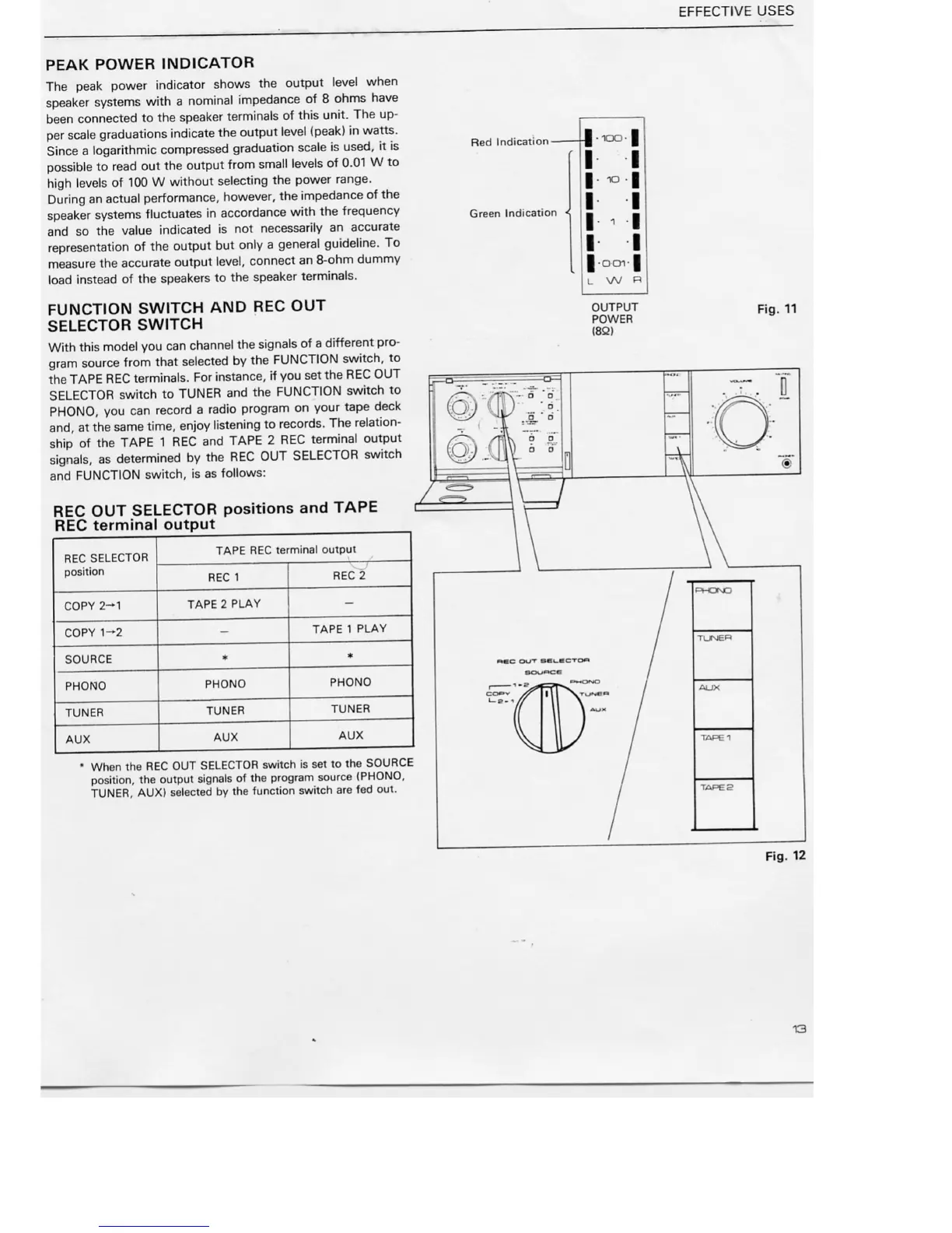Pioneer A-8 - Advanced Usage Features; Peak Power Indicator Usage; Function and REC OUT Selector Interaction