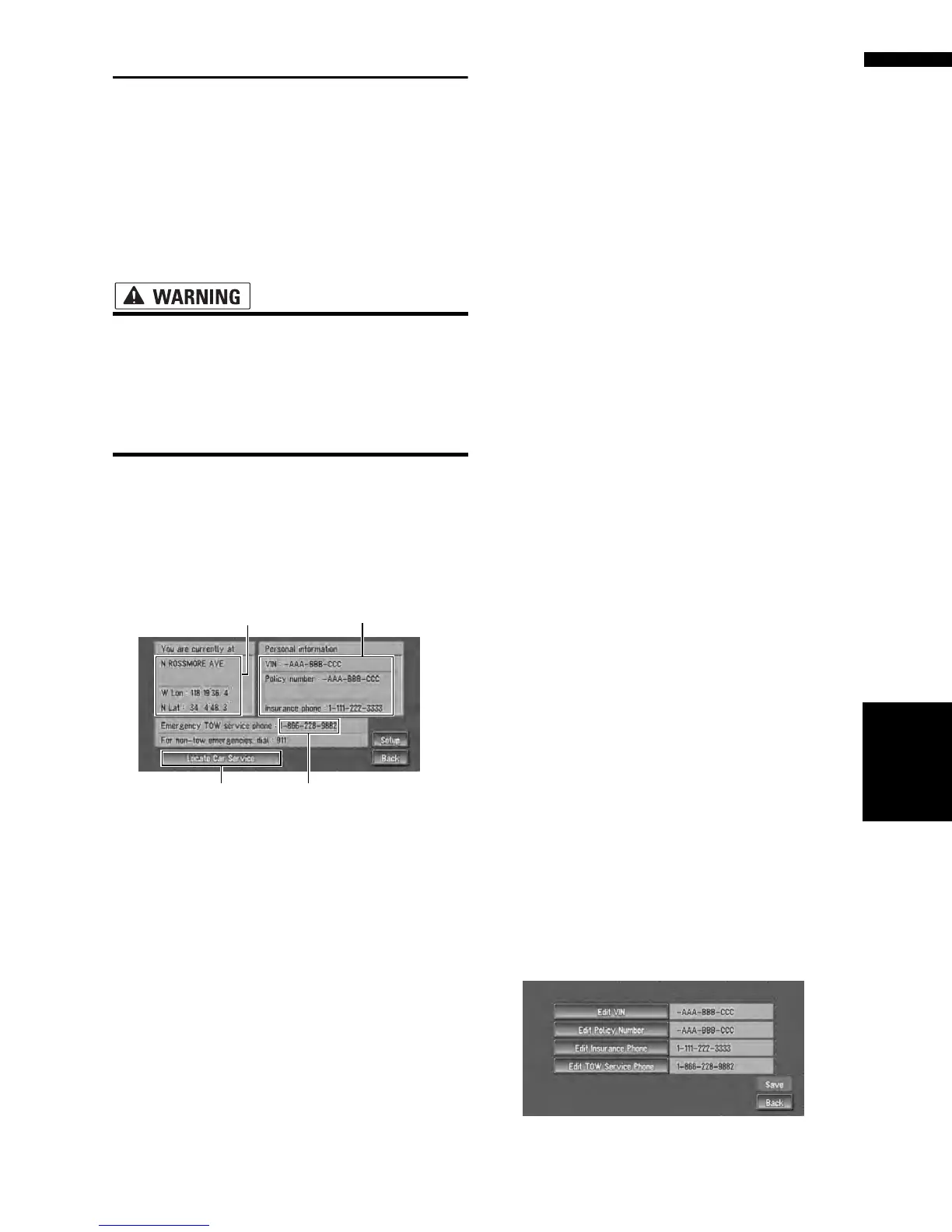 cle, insurance, and current location. Such emer-