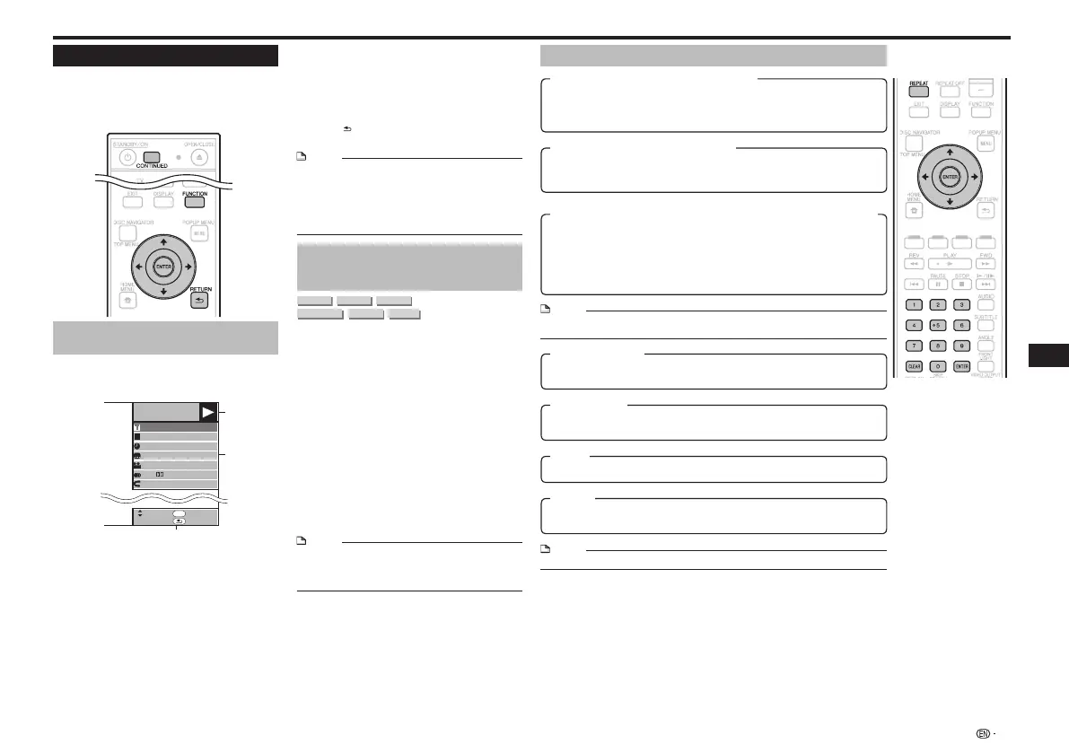 The current Title (or Chapter) or partial segments can be repeatedly played back. Repeat •