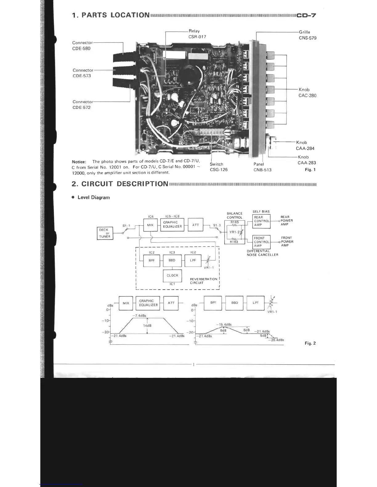 Pioneer CD-7 - 1. PARTS LOCATION; 2. CIRCUIT DESCRIPTION; Level Diagram