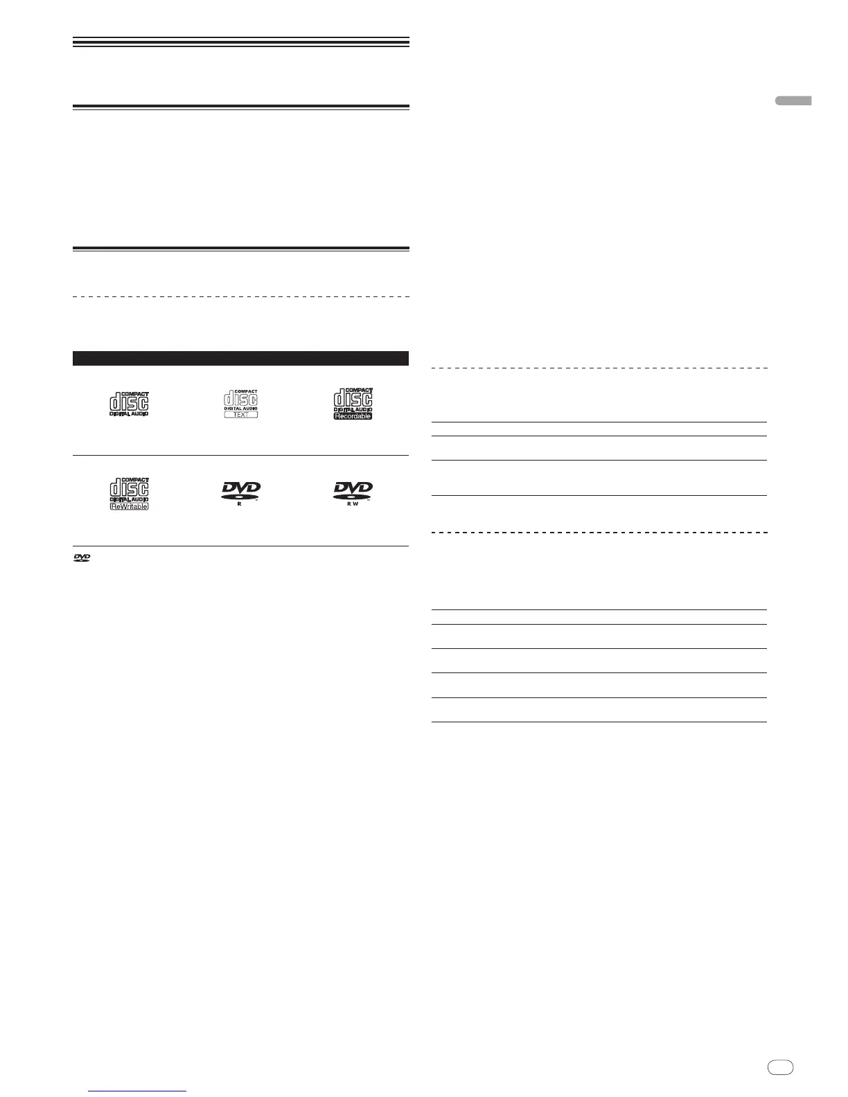 Discs playable on this player are as shown below.