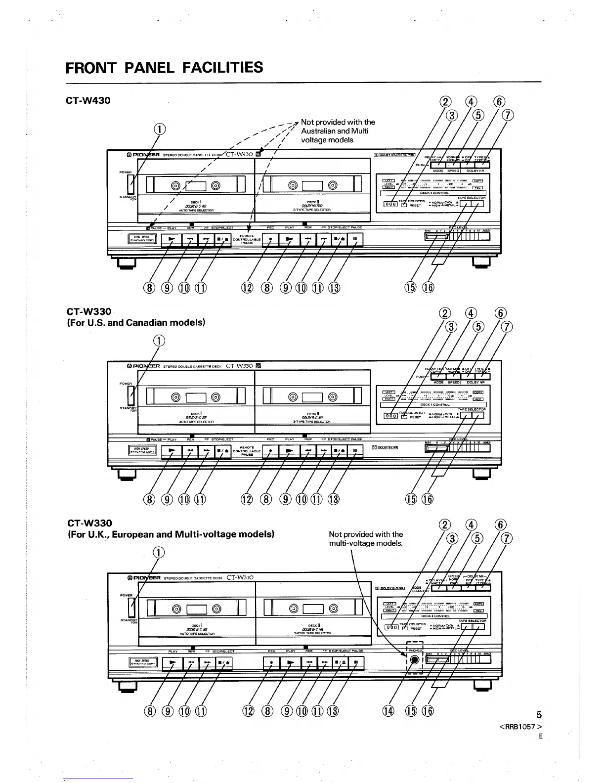 Pioneer CT-W430 - Front Panel Facilities