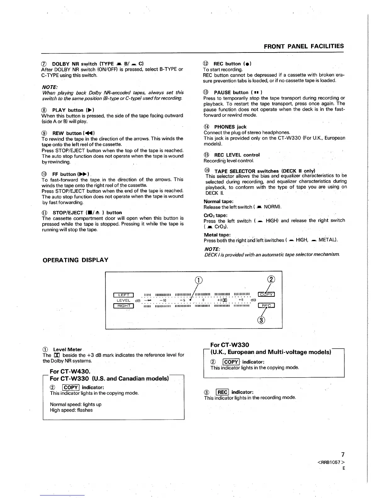 Pioneer CT-W430 - Operating Display