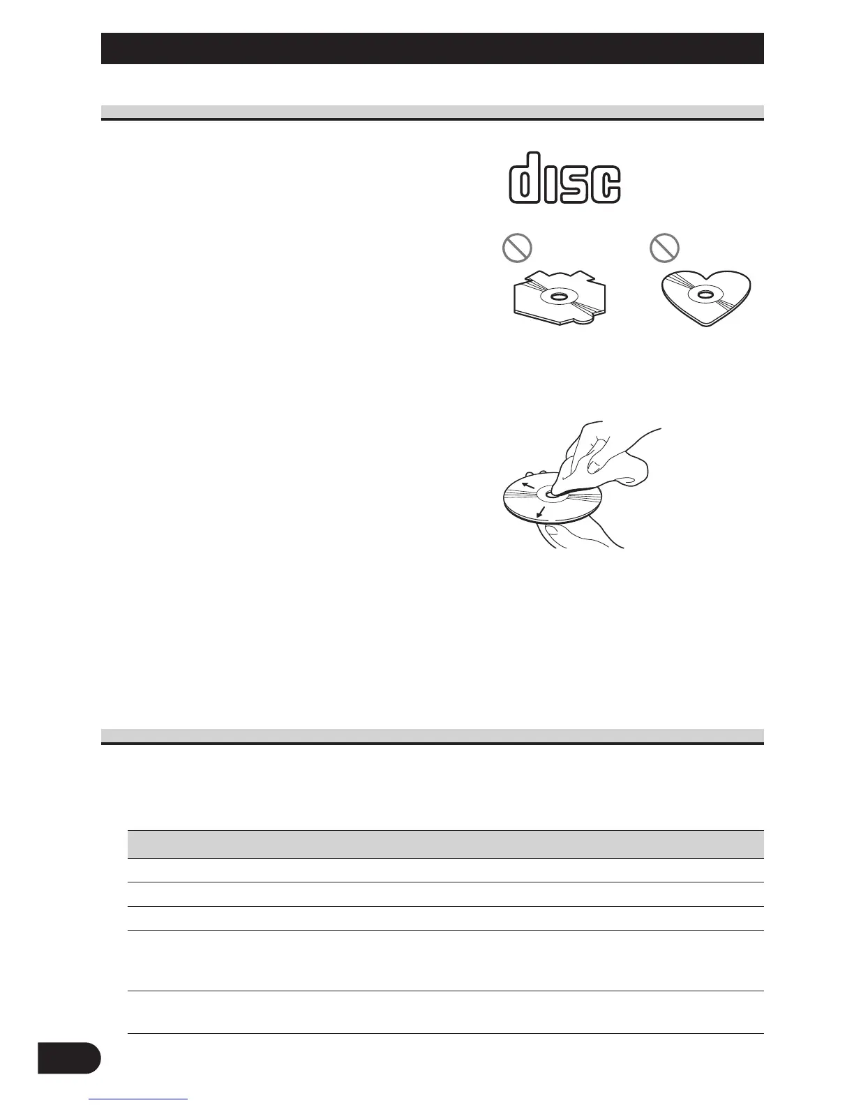 • Check all CDs before playing and discard cracked, scratched or warped discs.