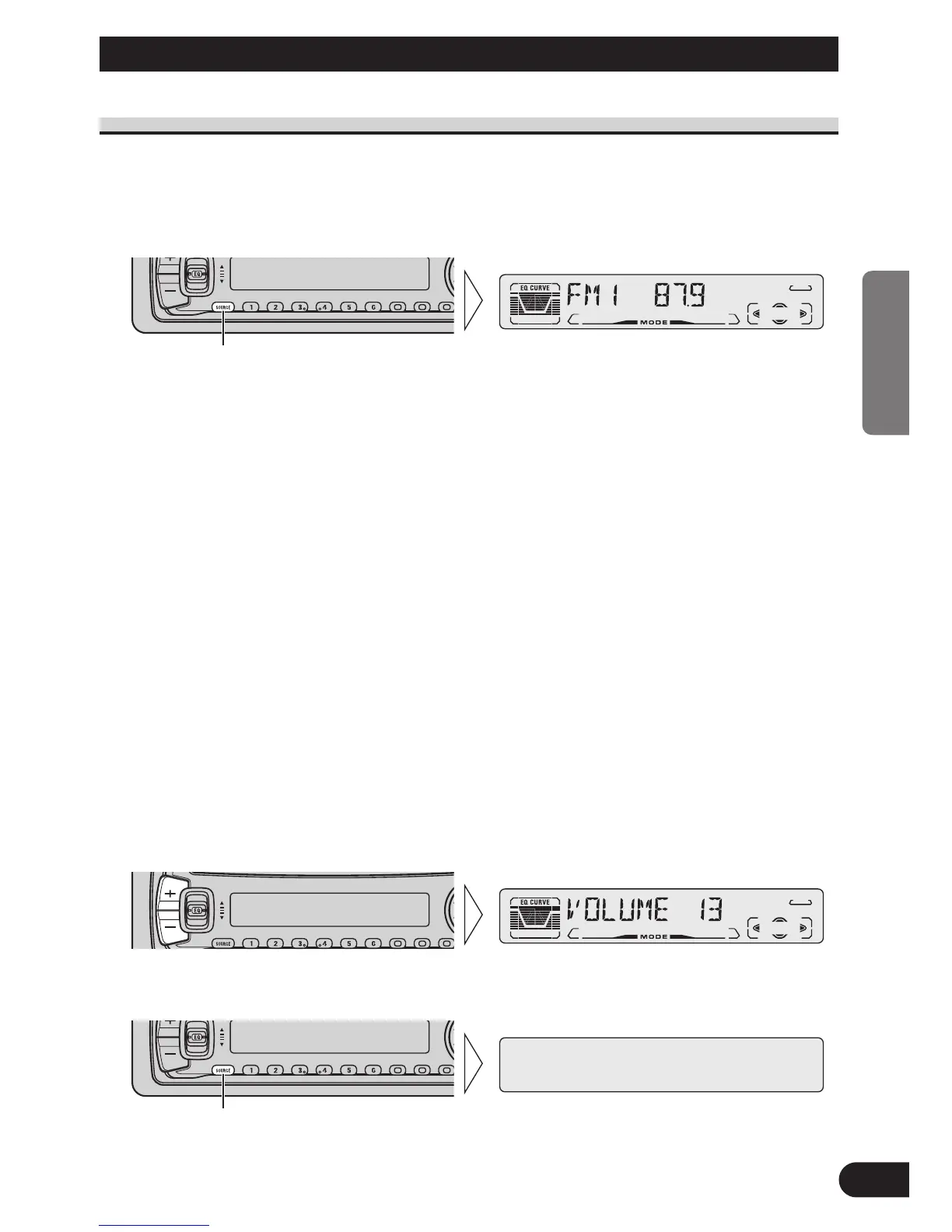 Chaque pression sur cette touche SOURCE, provoque le choix d’une autre source, comme suit: