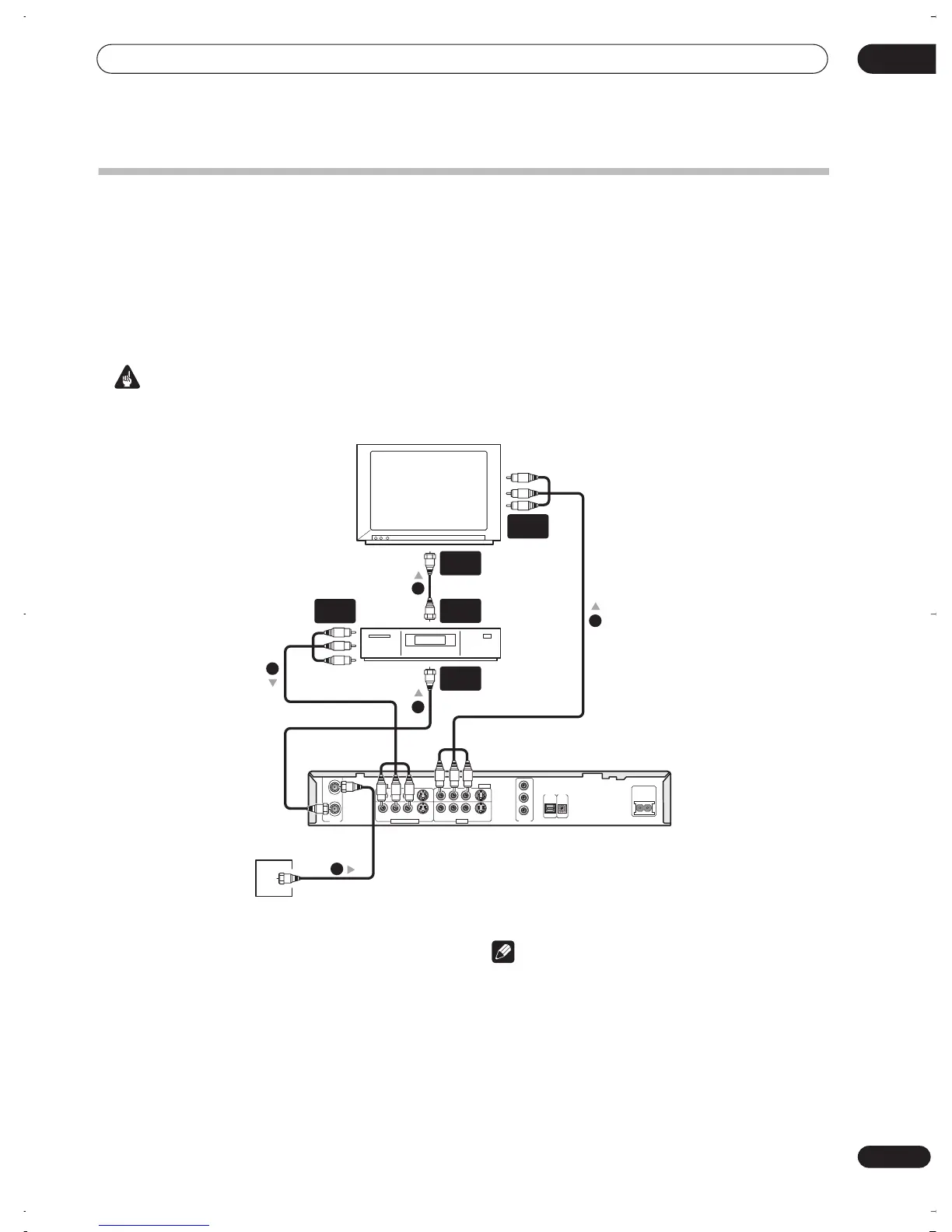 • Do not connect this recorder ‘through’ your VCR, satellite receiver or cable box. Always connect each component