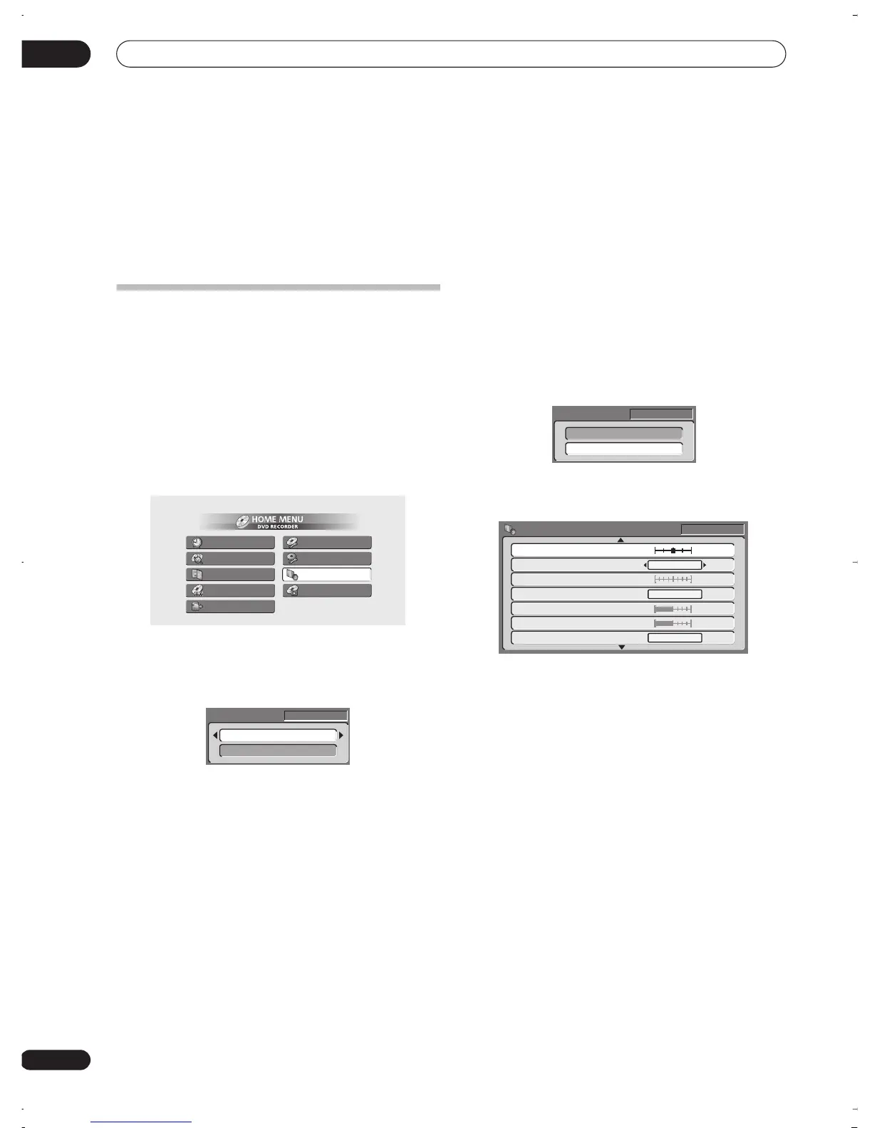 Using the Video/Audio Adjust menu you can set up the picture quality for the built-in tuner and external inputs, for disc
