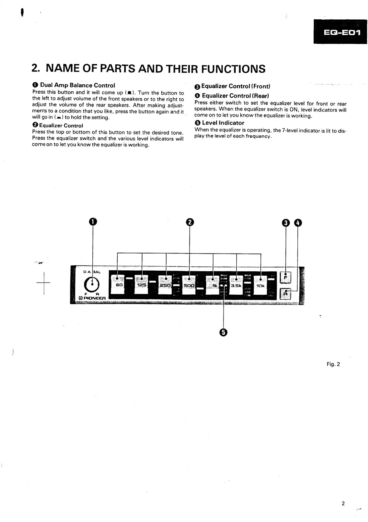 Pioneer EQ-E01 EW - Name of Parts and Their Functions
