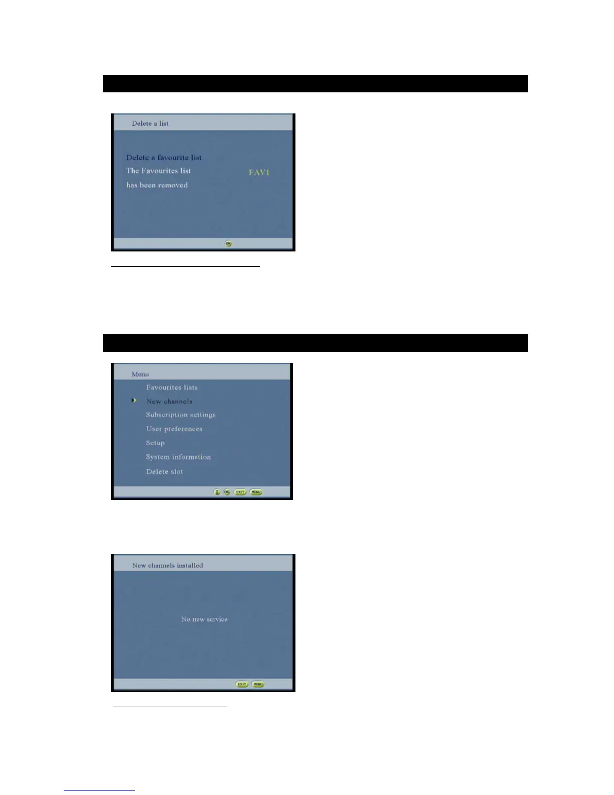 This screen presents the list of new services installed after a NIT (network information table) and/or SDT