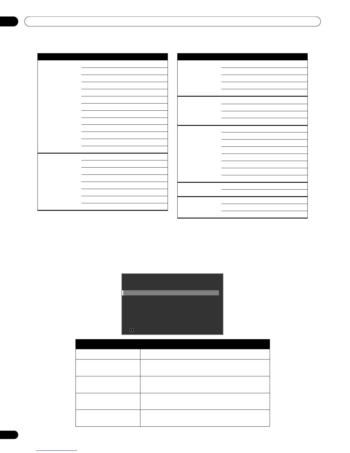 du menu principal (HOME MENU)”. Le tableau qui suit indique les menus disponibles.