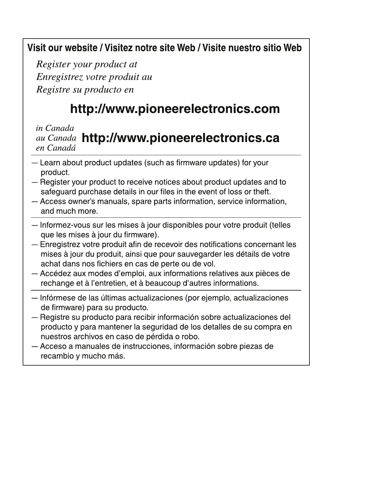 - Registre su producto para recibir informaci6n sobre actualizaciones del