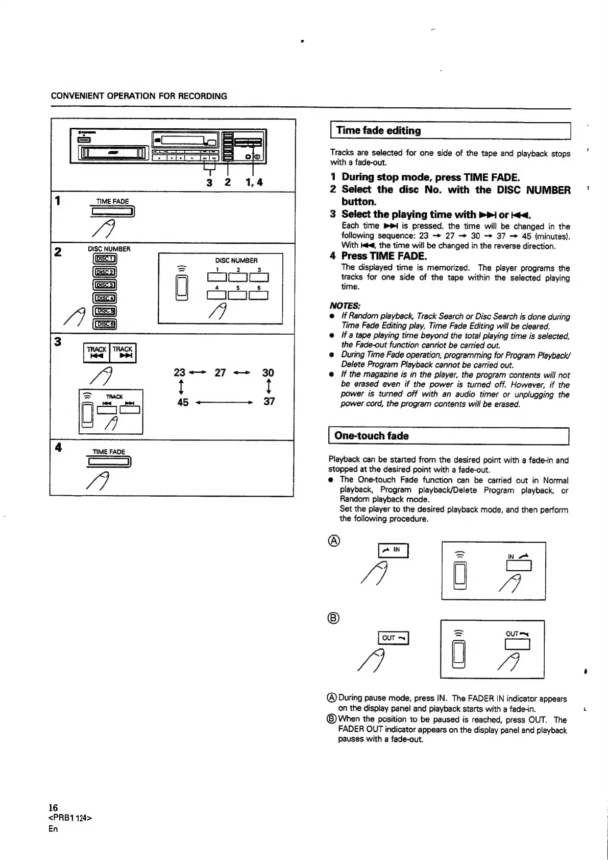 Pioneer PD-M430 - Recording Assistance: Fade Editing; Time Fade Editing Function