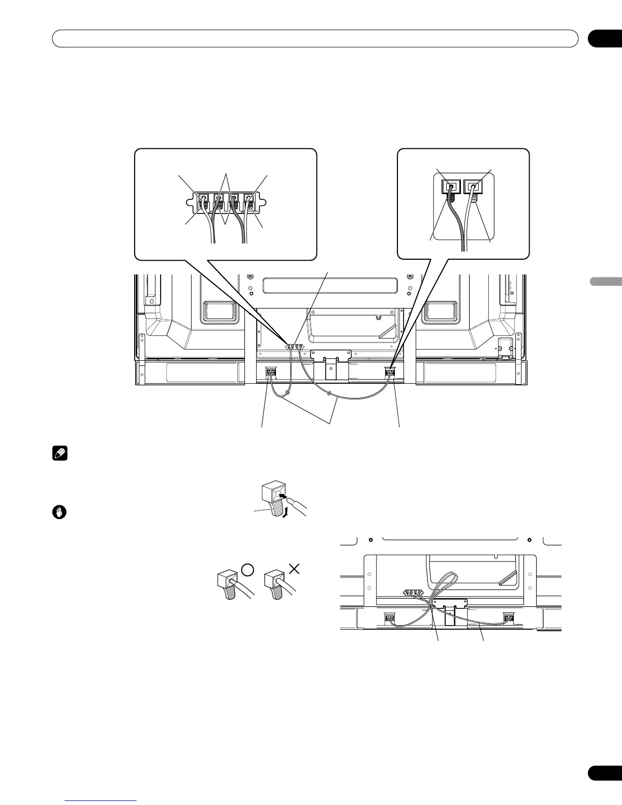 • Cuando ordene los cables de altavoz, asegúrese de atarlos en