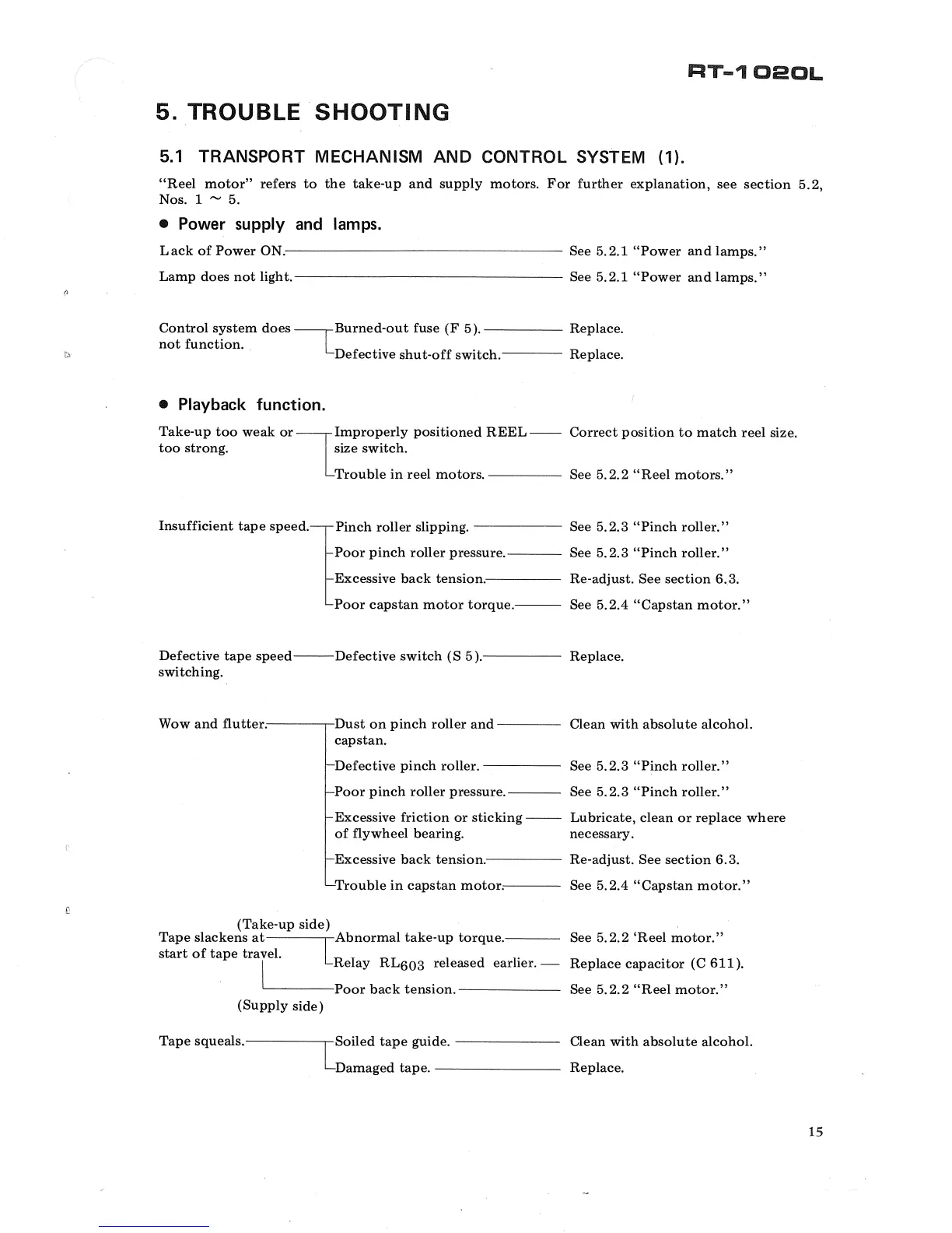 Pioneer RT-1020L - 5. TROUBLE SHOOTING; 5.1 TRANSPORT MECHANISM (1); 5.2 TRANSPORT MECHANISM (2)