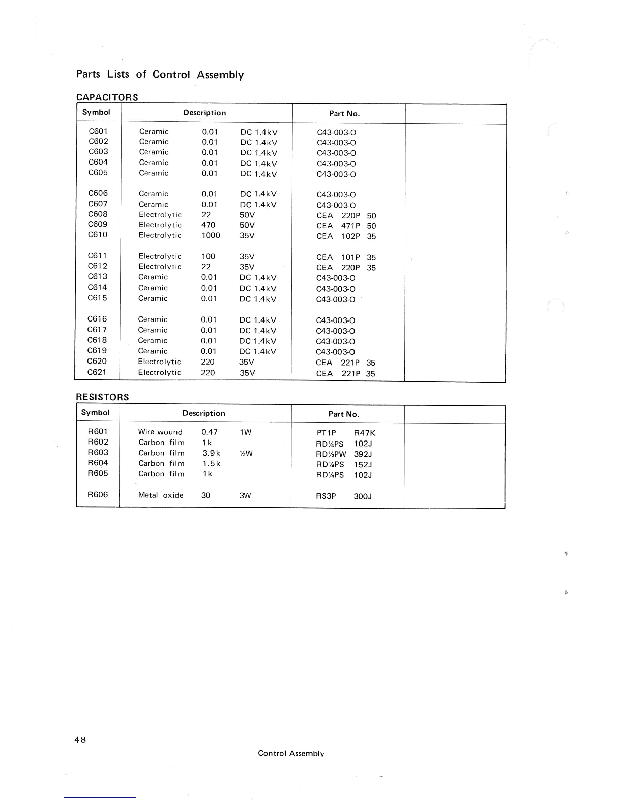 Pioneer RT-1020L - Part Lists of Control Assembly