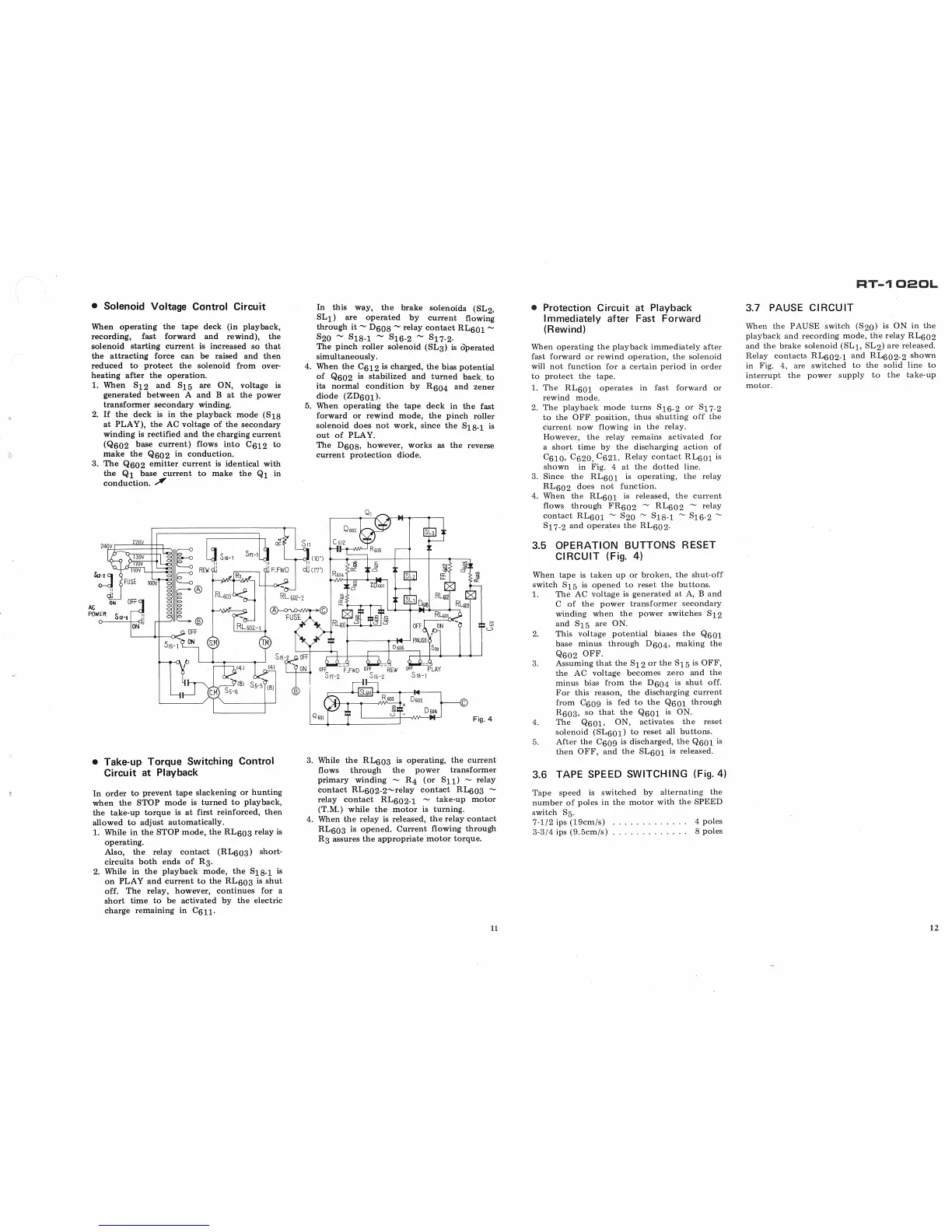 Pioneer RT-1020L - Operation Buttons Reset Circuit; Tape Speed Switching; Pause Circuit; Solenoid Voltage Control Circuit