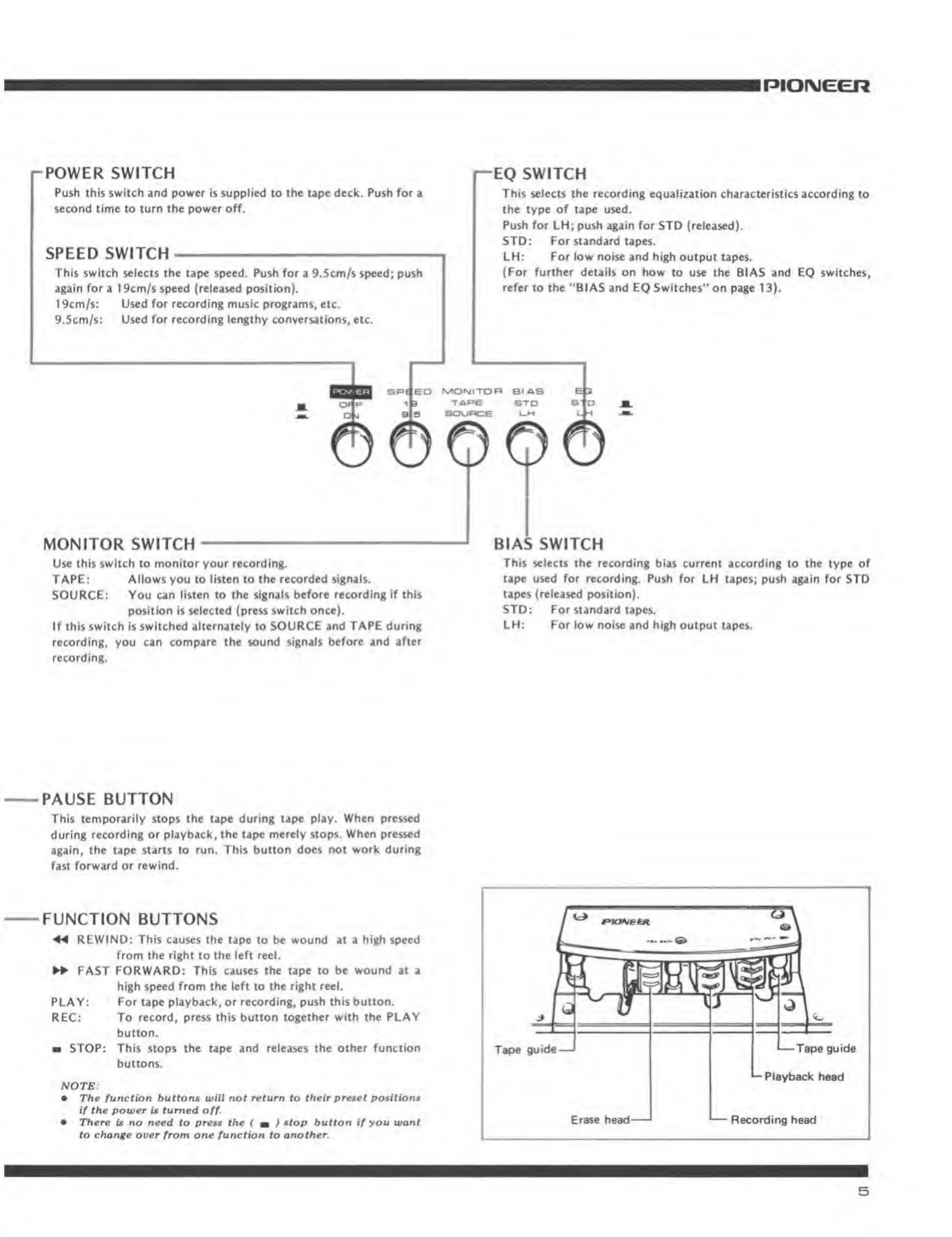 recording or playback, the tape merely stops. When pressed