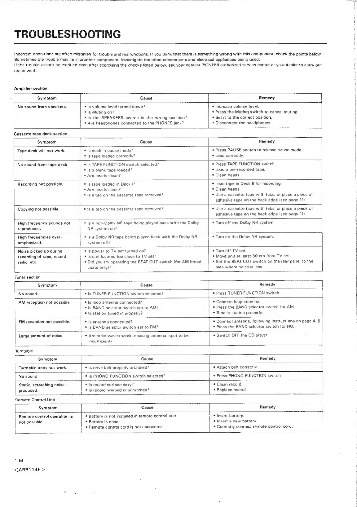 Pioneer RX-310 - Troubleshooting